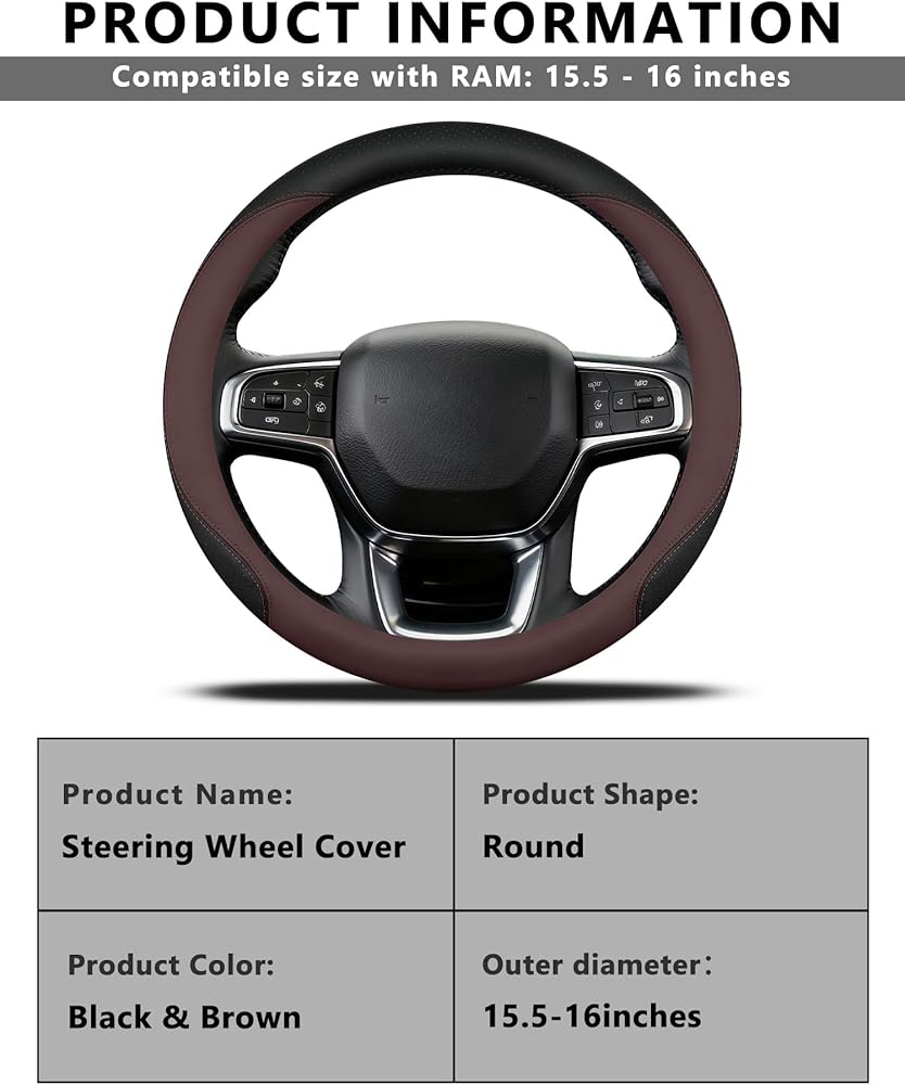 🎉 Upgrade Your Ride with the Ultimate Steering Wheel Cover for RAM Trucks! 🎉 Tired of flimsy, ill-fitting steering wheel covers that ruin your driving vibe? Our custom-designed cover for RAM 1500/2500/3500 (2012-present, 1980-1988) combines premium craftsmanship, all-season comfort, and practicality—ideal for truck owners who demand quality. ✅ All-Season PerformanceUnlike stiff PVC covers, our soft PU leather stays flexible in cold winters (no cracking!) and breathable in scorching summers, keeping hands comfy whether you're hauling cargo or cruising highways. It's the perfect year-round steering wheel wrap for your RAM truck. ✅ Durable & Low-MaintenanceScratch-resistant, fade-proof, and easy to wipe clean with a damp cloth—this cover stands up to daily use, pet claws, and accidental spills. Protect your OEM steering wheel from wear, aging, and sun damage while adding a touch of luxury to your RAM's cabin. ✅ Ergonomic Design for Long DrivesThe smooth, skin-friendly PU leather reduces hand fatigue during cross-country trips or daily commutes, while the anti-slip rubber inner ring ensures a firm grip even on bumpy roads or off-roading adventures. A must-have RAM truck accessory for frequent drivers! ✅ Versatile & StylishWhether you have a work truck or a weekend cruiser, this minimalist steering wheel cover complements any interior—from classic to modern. It's not just a protective wrap; it's a budget-friendly way to upgrade your RAM 1500/2500/3500's interior without major modifications. ✅ Trusted Quality for RAM EnthusiastsDesigned specifically for RAM trucks, this cover fits like a glove and installs in minutes—no professional help needed. It's the ideal gift for RAM owners who want to enhance comfort, safety, and style in one easy step. Don't settle for mediocre—treat your RAM truck to a steering wheel cover that works as hard as you do! 🚚💨