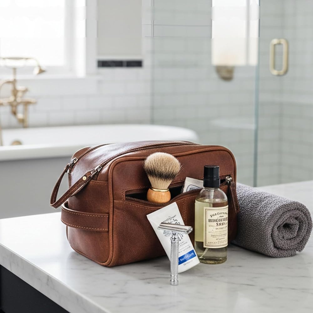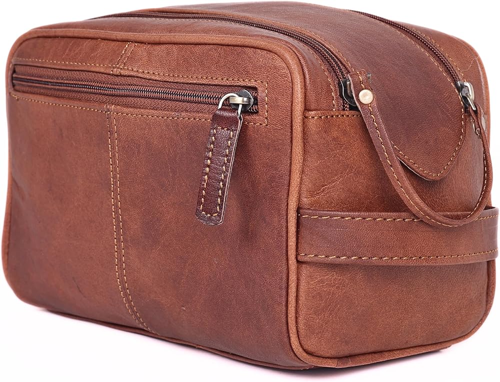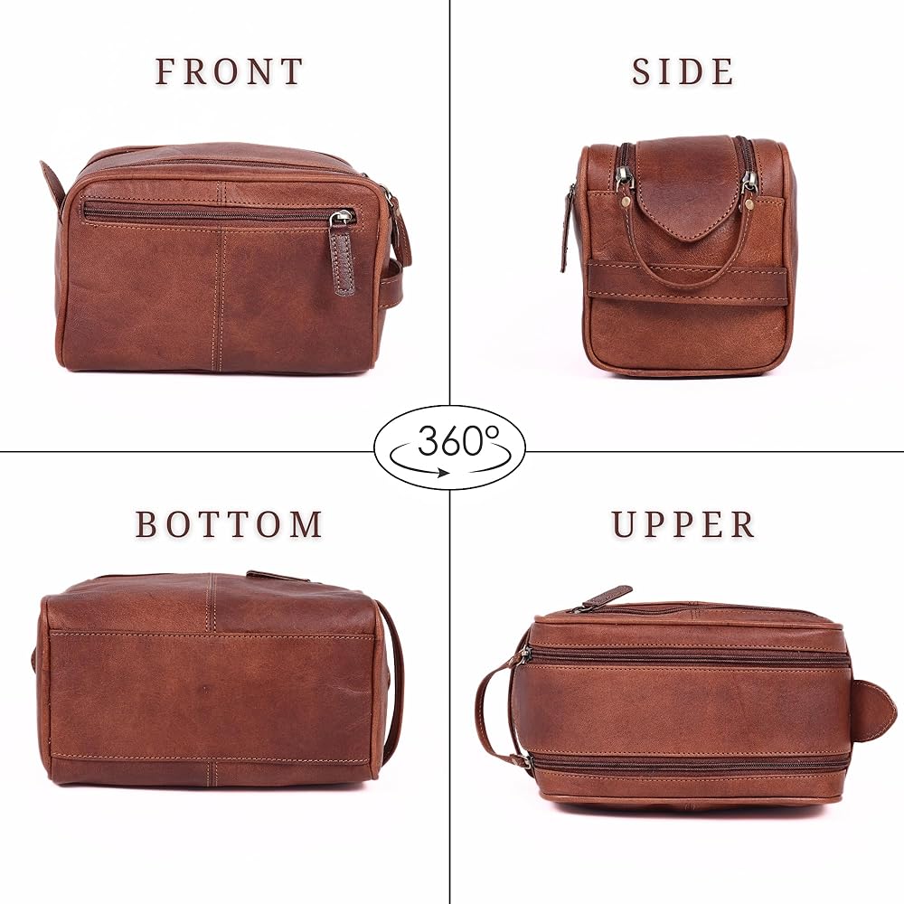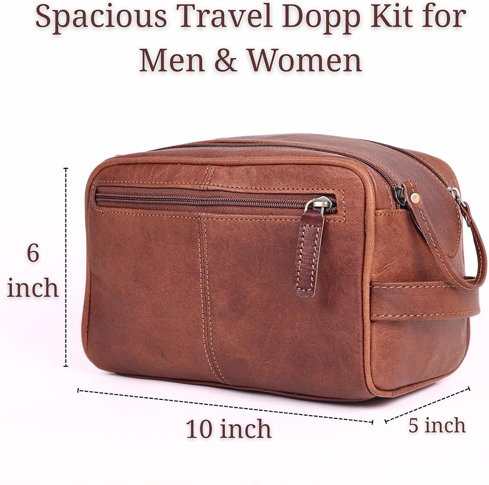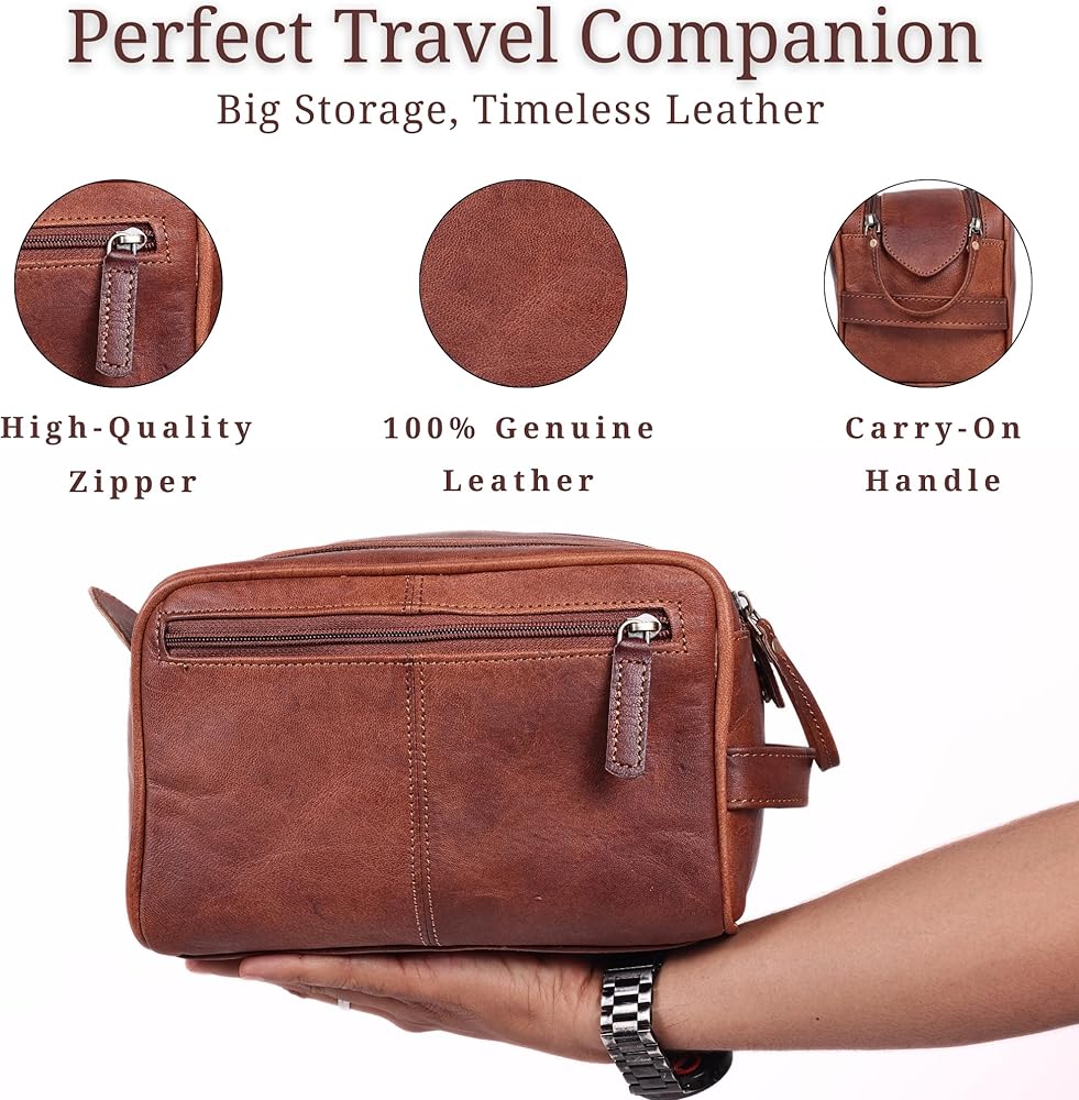 مصنوعة يدويًا ومناسبة للسفر: مصنوعة يدويًا على يد حرفيين مهرة، تحتوي حقيبة السفر الصغيرة للرجال هذه على مقبض جلدي قوي ومتكامل. من السهل انتزاعها من حقيبتك أو تعليقها أو وضعها بشكل مريح على طاولة حمام الفندق