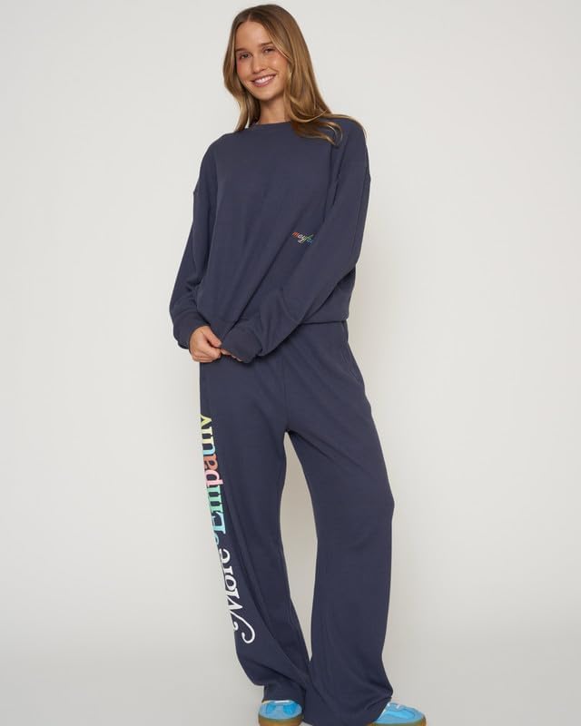 Classic fit crewneck in signature navy blue waffle color. Made from a soft cotton-polyester blend with puff printed graphics and embroidered details. Machine wash cold and hang dry.