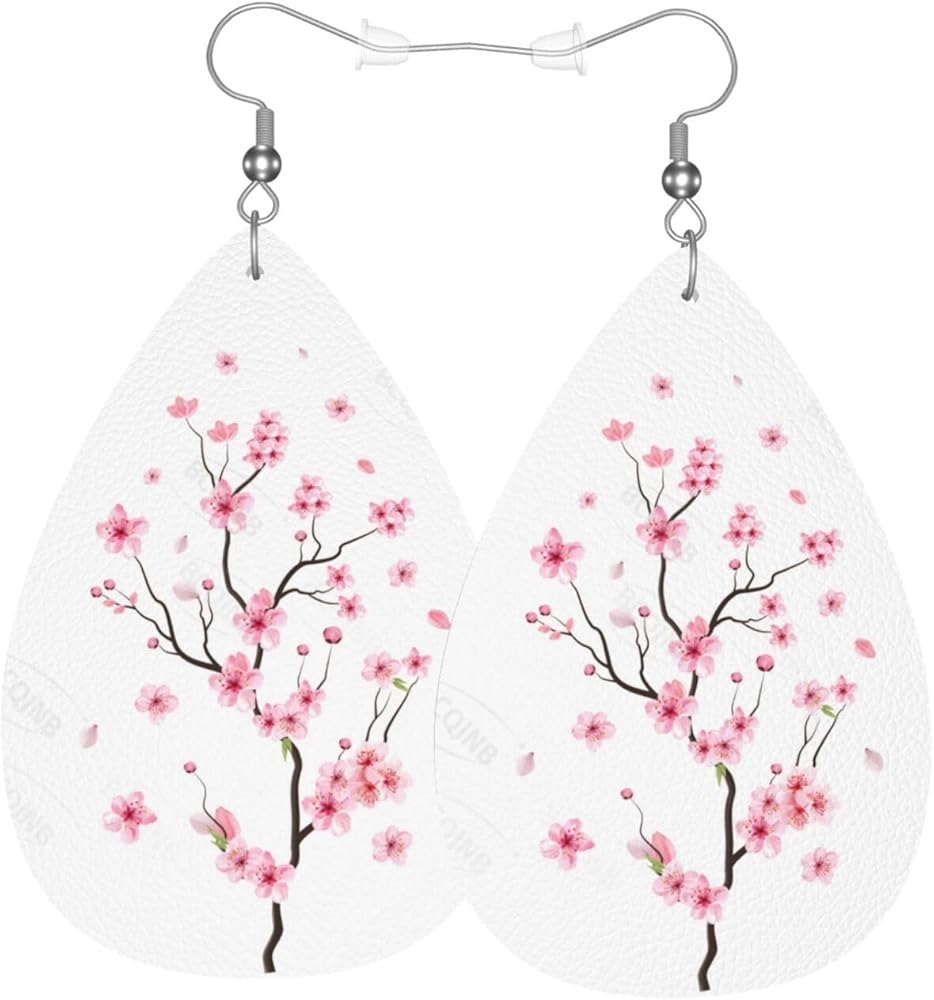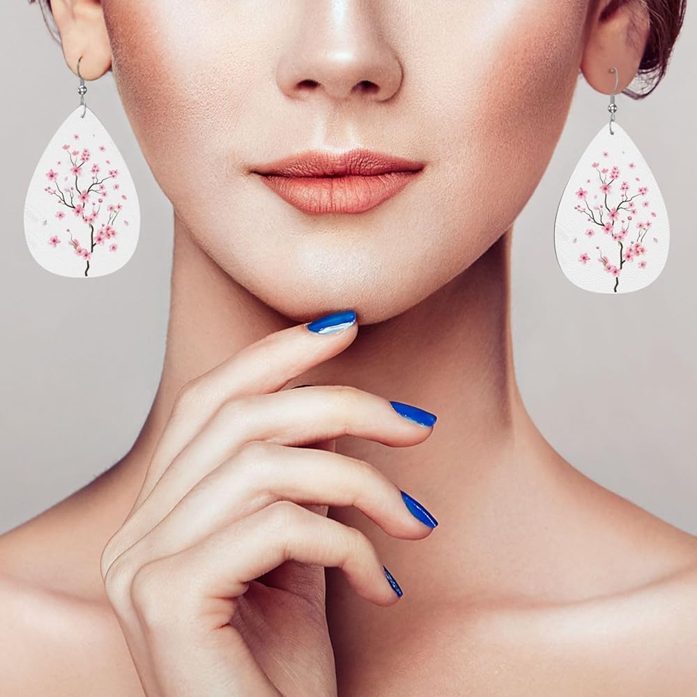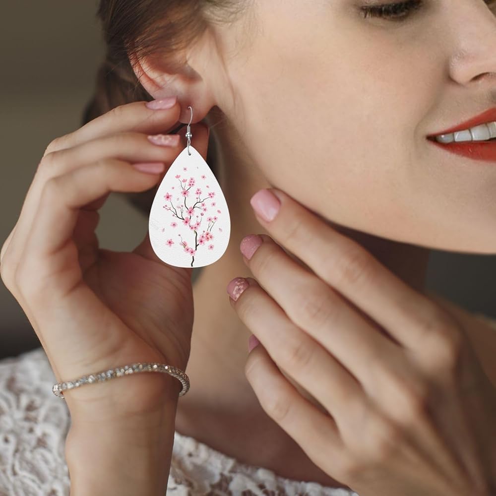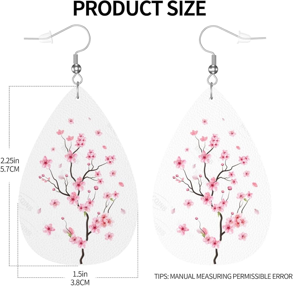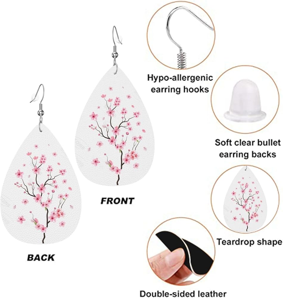 المواد: أقراط Cherry Blossom مصنوعة من جلد صناعي عالي الجودة؛ الخطافات المطلية بالفضة خفيفة الوزن ومتينة وغير قابلة للصدأ؛ مريحة للارتداء لفترات طويلة دون إرهاق الأذنين