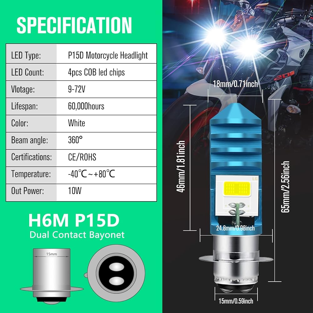 2 قطعة 9-48 فولت ATV LED لمبات بيضاء، 1800LM Hi-Lo Beam 4COBs H6M P15D LED لمبات للدراجات النارية أو Y amaha، ATVS Y FM350 450 400 660 700 Raptor.