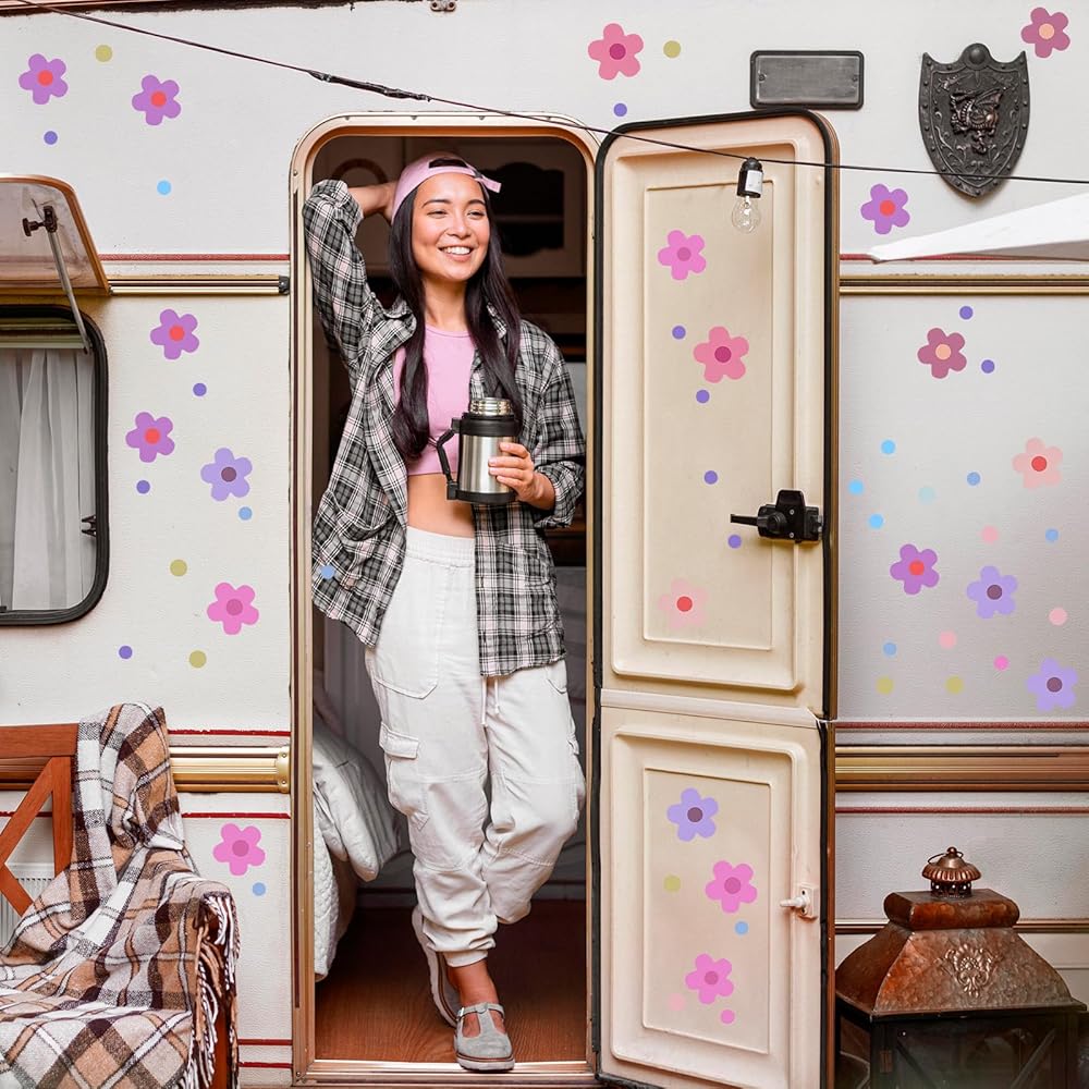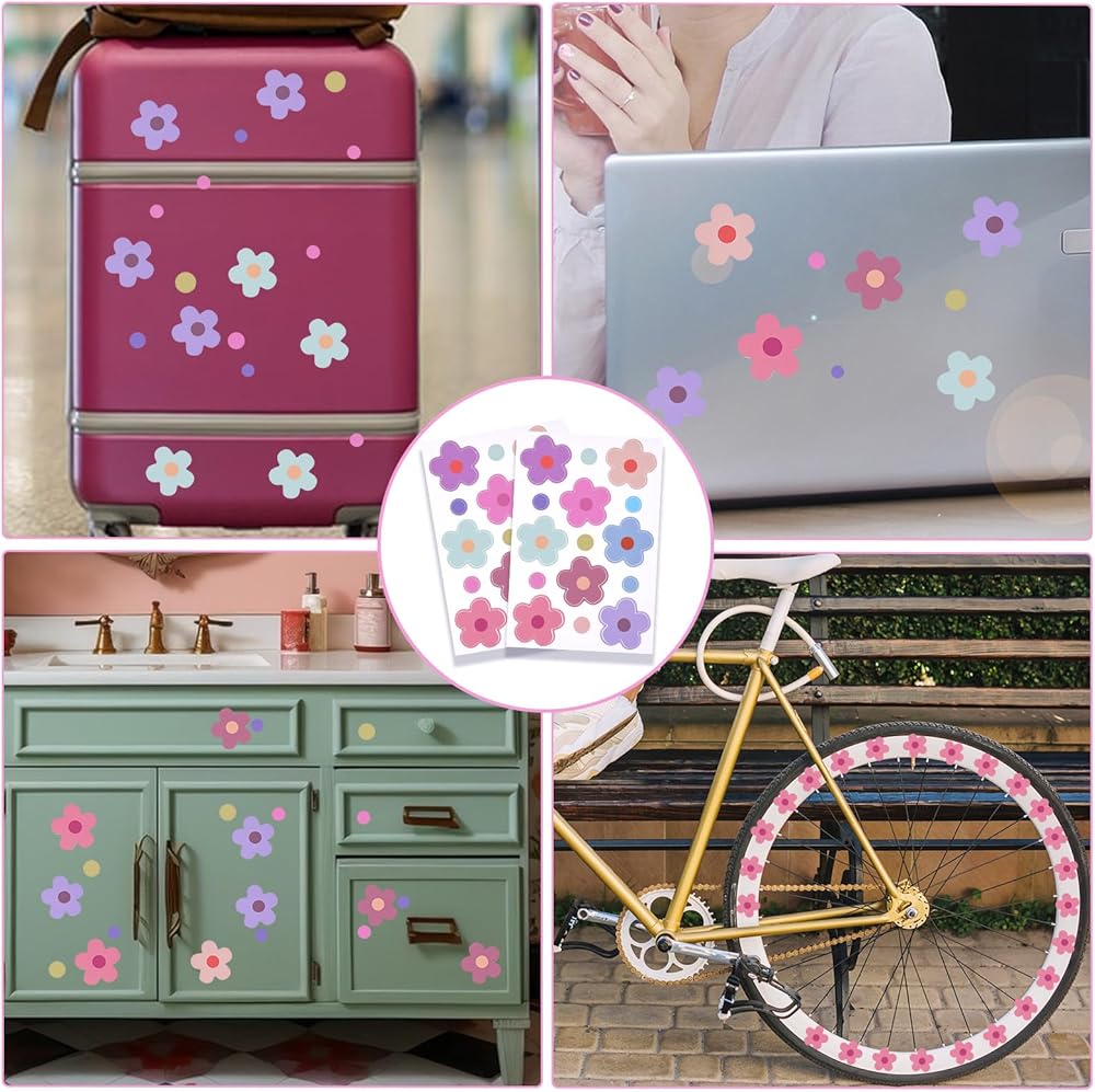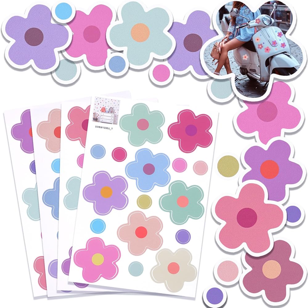 70 قطعة من ملصقات الدراجة على شكل زهور، ملصقات سيارة على شكل زهرة مقاومة للماء، ملصق ذاتي اللصق للدراجة النارية وخوذة الحافلة والسكوتر ملصقات فينيل لمخطط نافذة الدراجة الإلكترونية وتزيين أمتعة الكمبيوتر المحمول