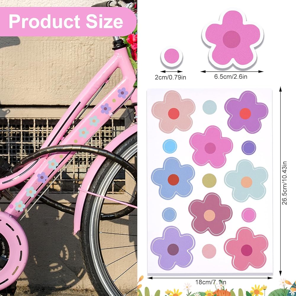 • 【Colorful and Versatile Stickers for Bikes】Our stickers for bikes come in a variety of macaron colors, including pink, purple, and yellow, offering endless possibilities for customization. Perfect for adding a touch of charm to your bike, these bike stickers are designed to catch the eye and enhance your ride's aesthetic
