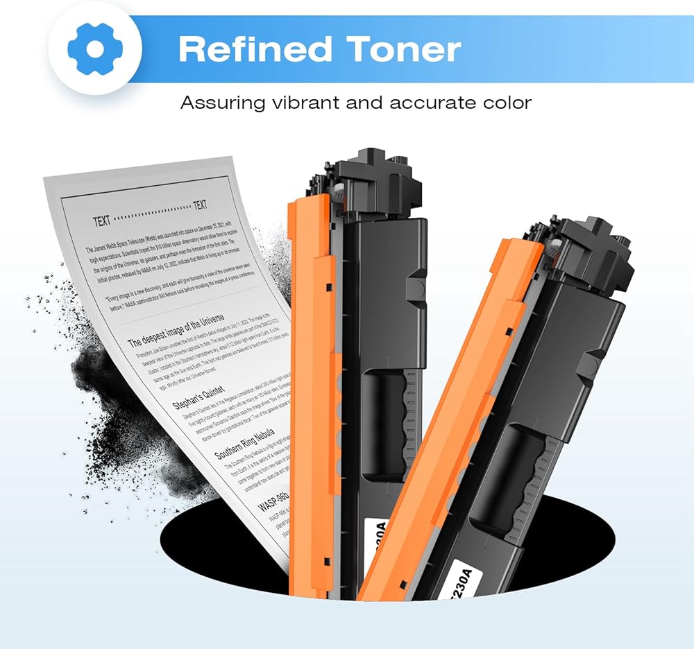 - إنتاجية عالية للصفحة: يعمل مسحوق الحبر CF230A 30A على إنشاء ألوان سوداء غنية ويطبع ما يصل إلى 1600 صفحة بتغطية 5%