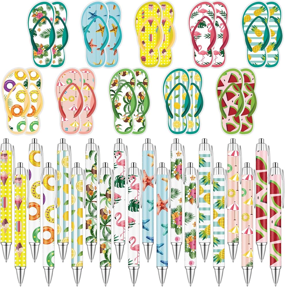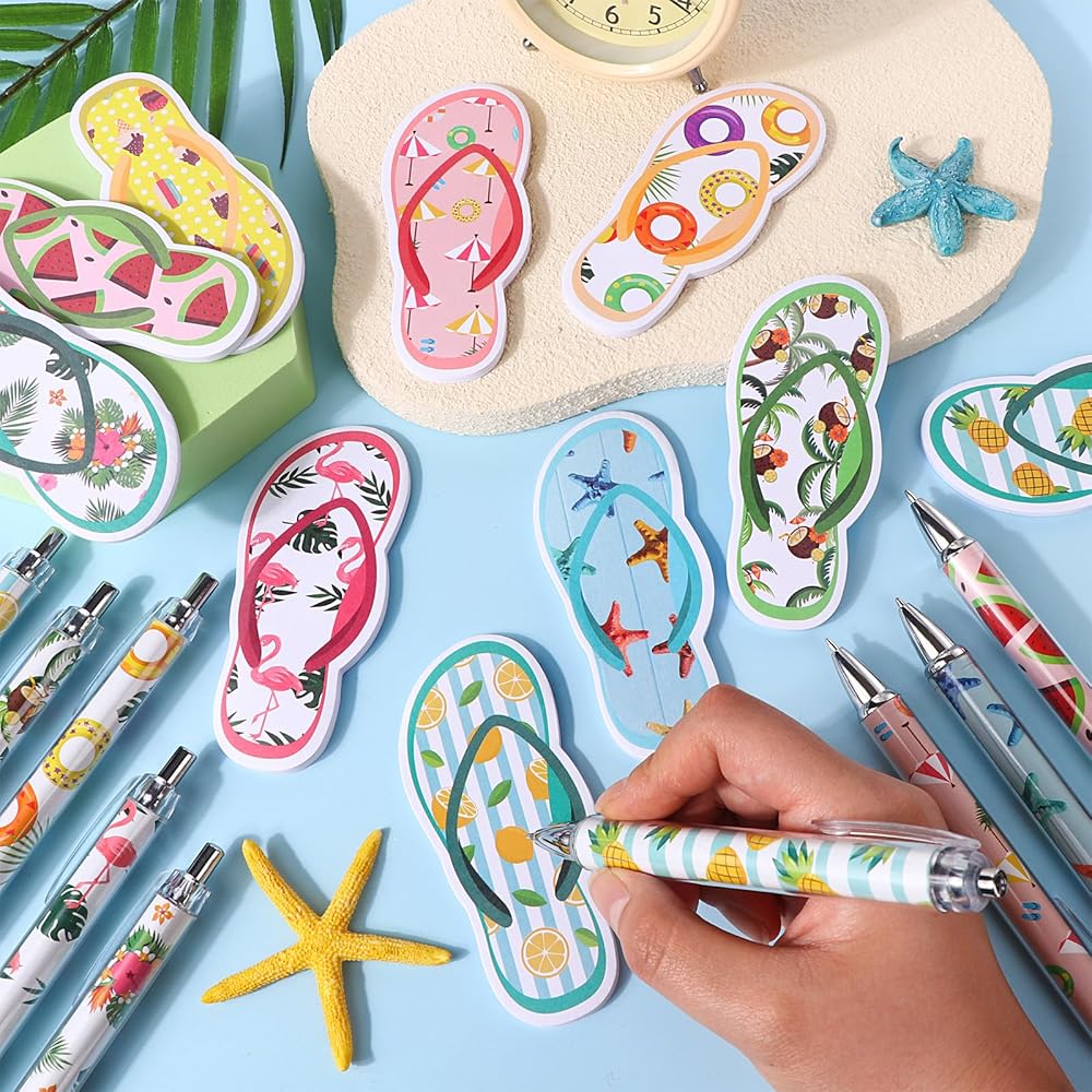• Summer Theme Design: These beach sticky notes are designed with different flip-flops patterns, and equipped with sticky glue on the back and easy to peel down, which can be reliably adhered to most flat and clean surfaces; Each retractable gel pen features vibrant summer elements, such as ice cream, watermelon, pineapple, and more, bringing a taste of the funny summer season to your workspace