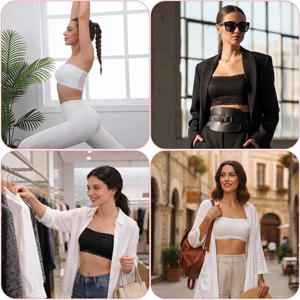 Package Includes: This set includes two lace tube top bras in classic black and versatile white. The complementary colors easily blend into any wardrobe style, making them essential layering pieces for creating casual or sophisticated looks.