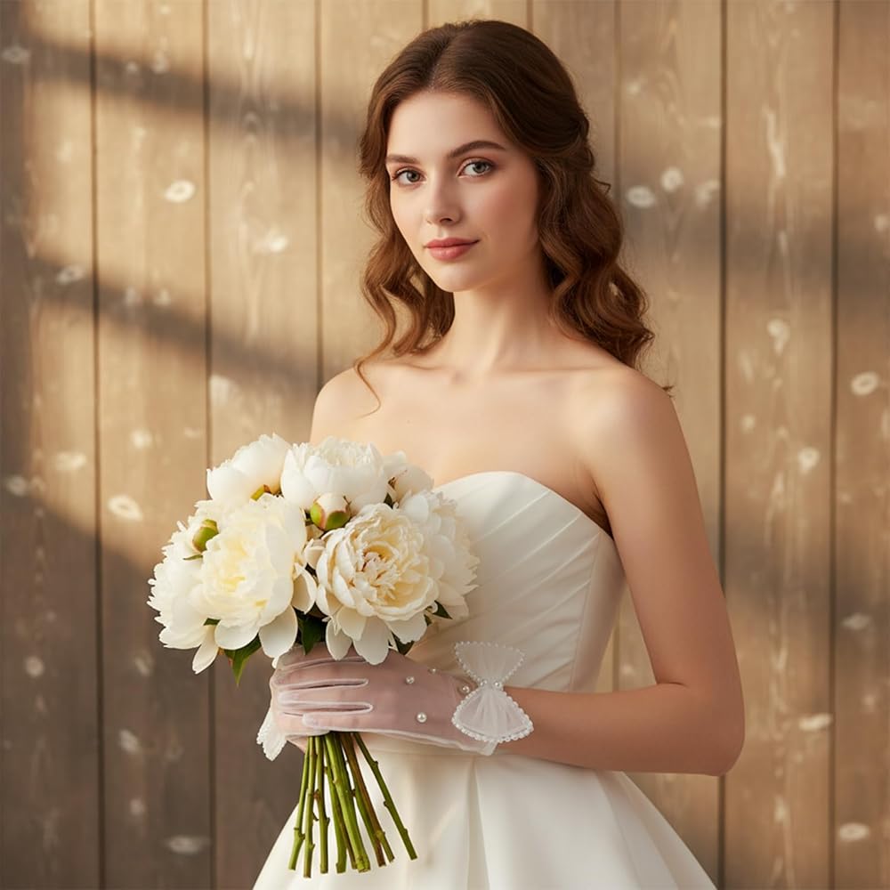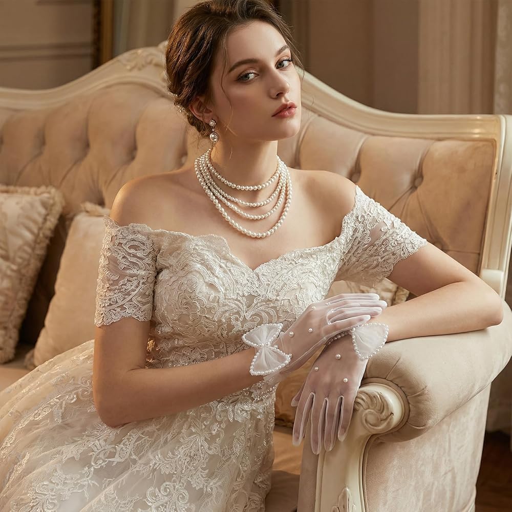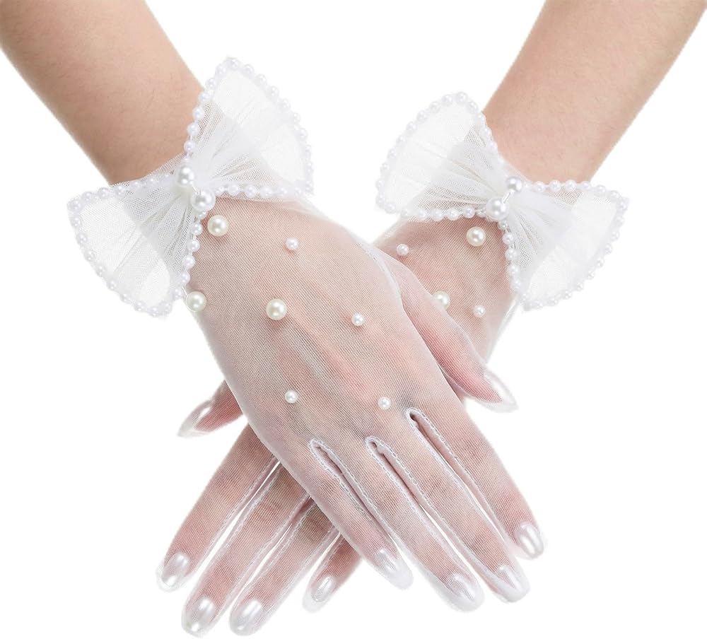 • 【Elegant Vintage Design】These white pearl mesh gloves feature a delicate short design adorned with a bow and imitation pearls. White Pearl Tulle Gloves Lightweight tulle complements delicate pearls to create an understated, airy beauty that perfectly reflects your personal style and adds a touch of vintage elegance to any outfit.