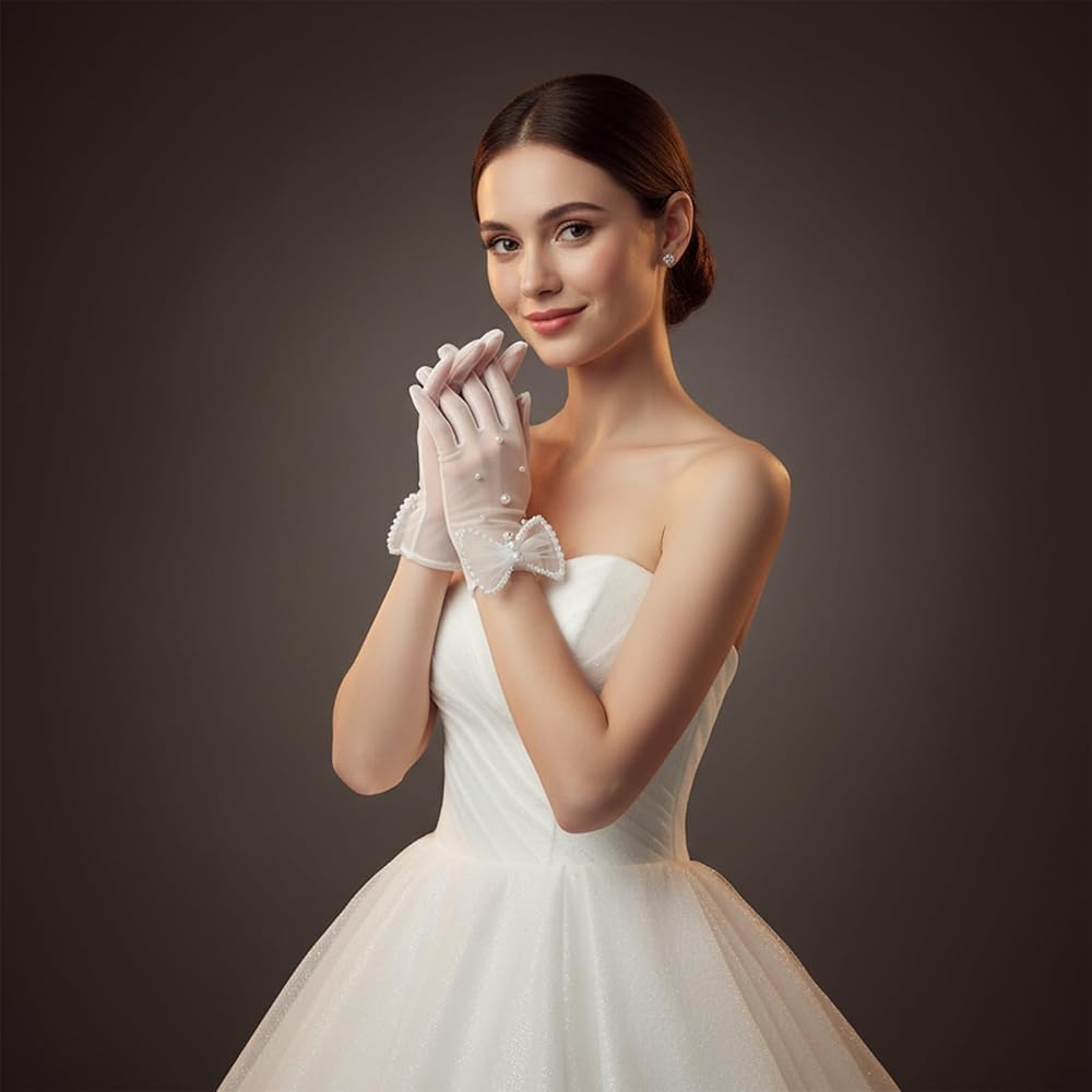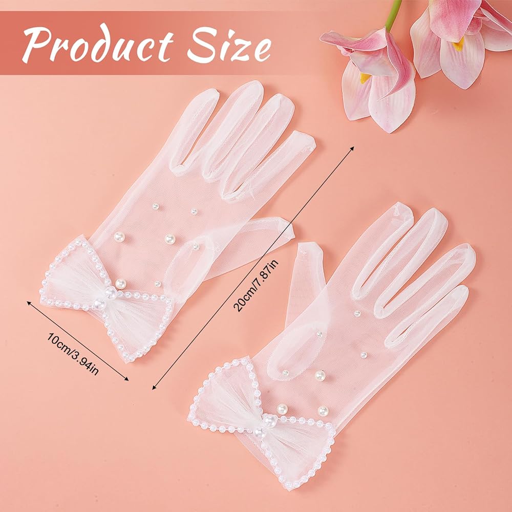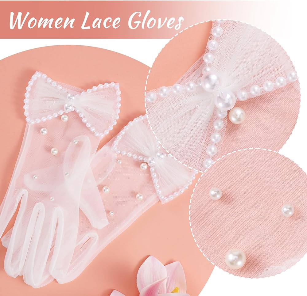 • 【Thoughtful Craftsmanship Details】Our short lace gloves are meticulously constructed with non-pilling fabric and precise stitching. The tulle design, accented with a sturdy bow and pearls, adds sophistication and elegance. These white gauze gloves are designed with elegance and sophistication in mind without sacrificing comfort and quality.