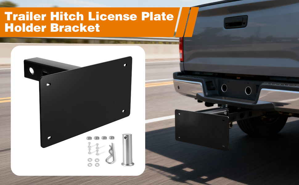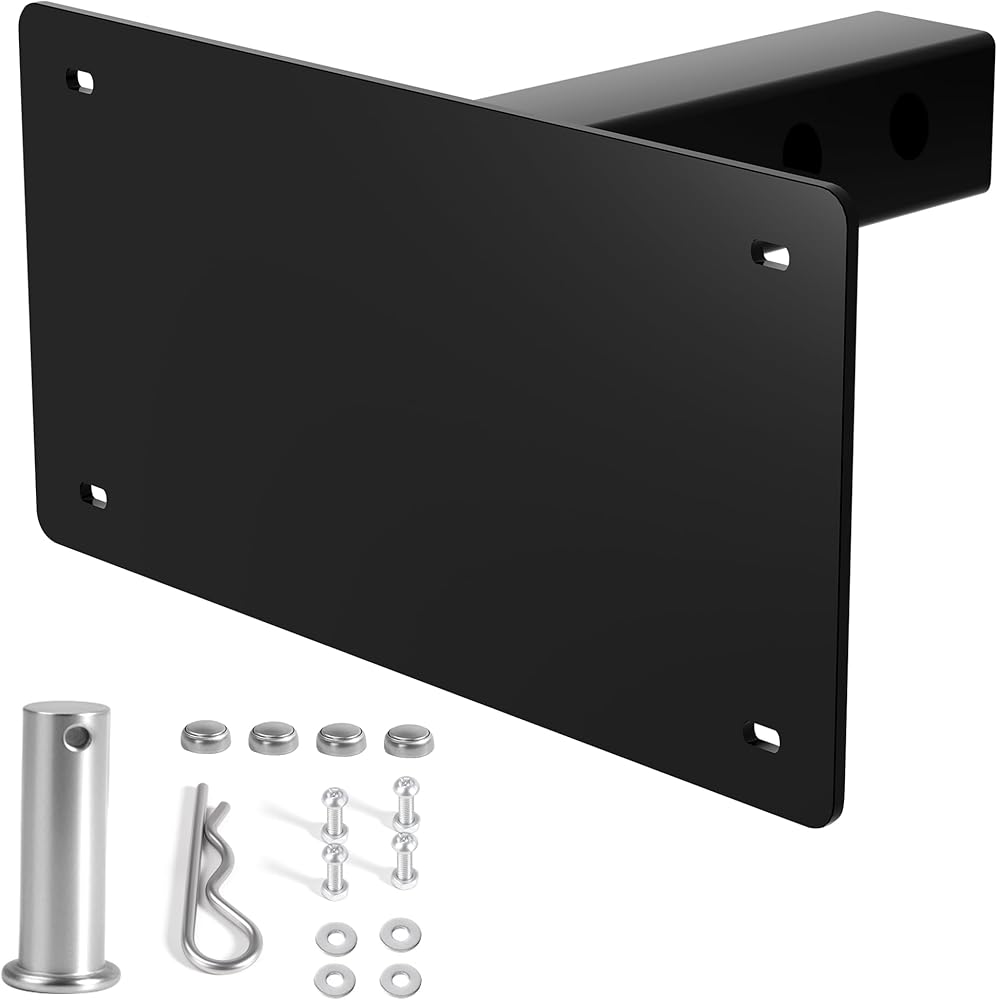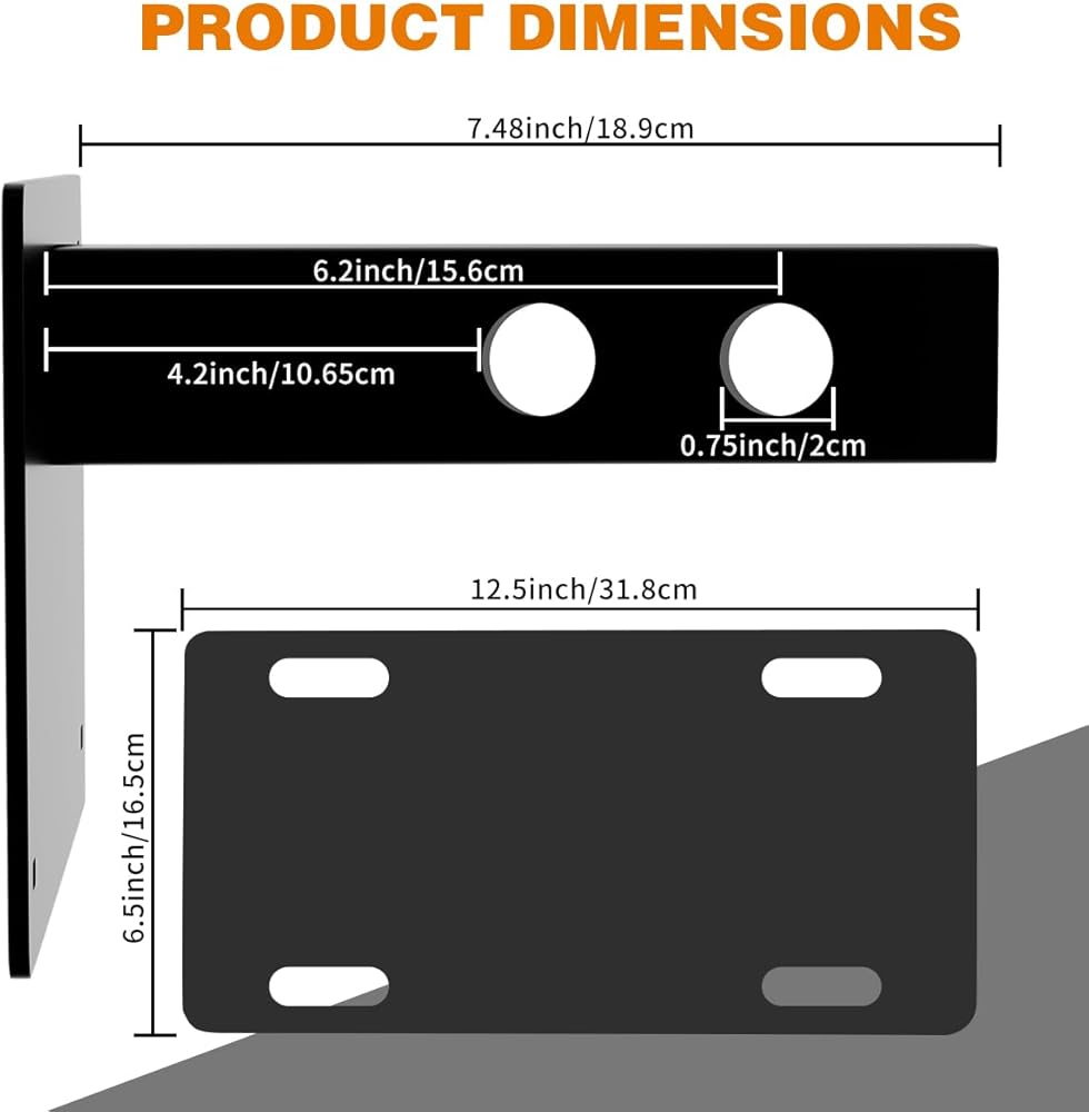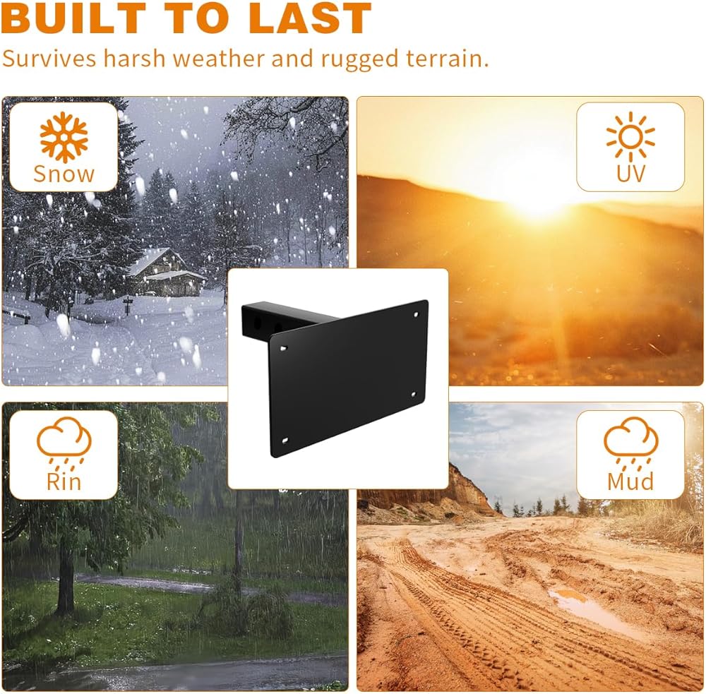 متوافقة على نطاق واسع: دعامة حامل لوحة ترخيص وصلة المقطورة للوحات الترخيص القياسية، متوافقة مع معظم المركبات، يمكن تركيبها بسهولة على الشاحنات أو سيارات الدفع الرباعي أو RVs المجهزة بمستقبلات ربط المقطورة الأمامية أو الخلفية القياسية مقاس 2 بوصة × 2 بوصة.