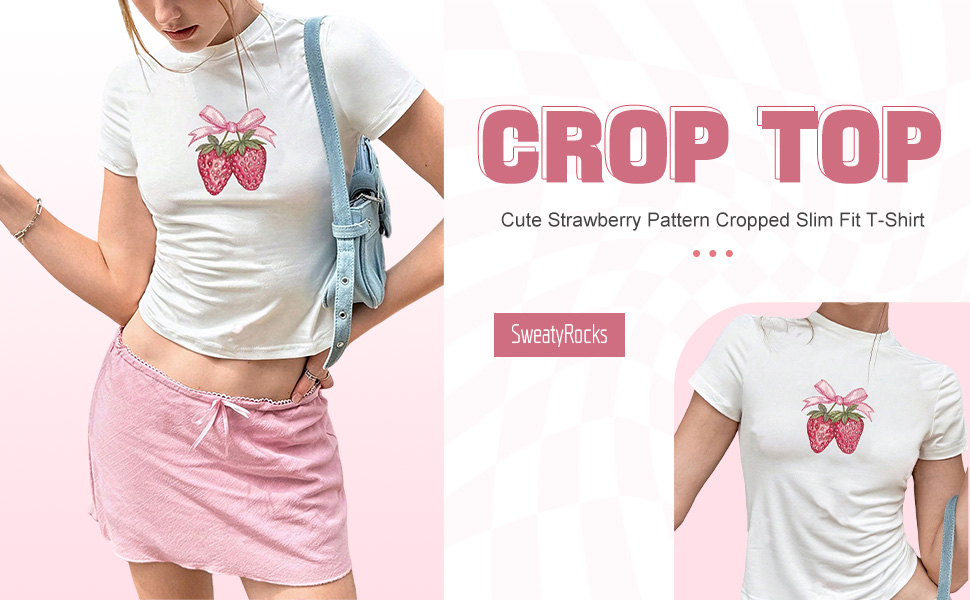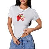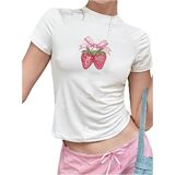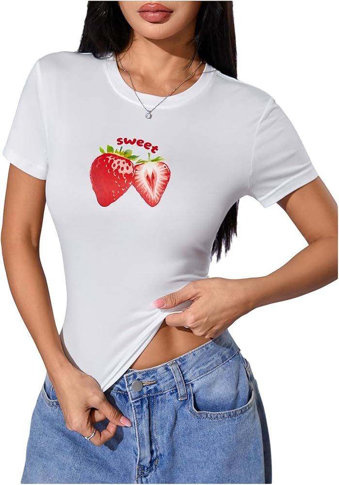 تي شيرت SweatyRocks نسائي لطيف برسومات الفراولة ومتماسك بقصة ضيقة in Kuwait