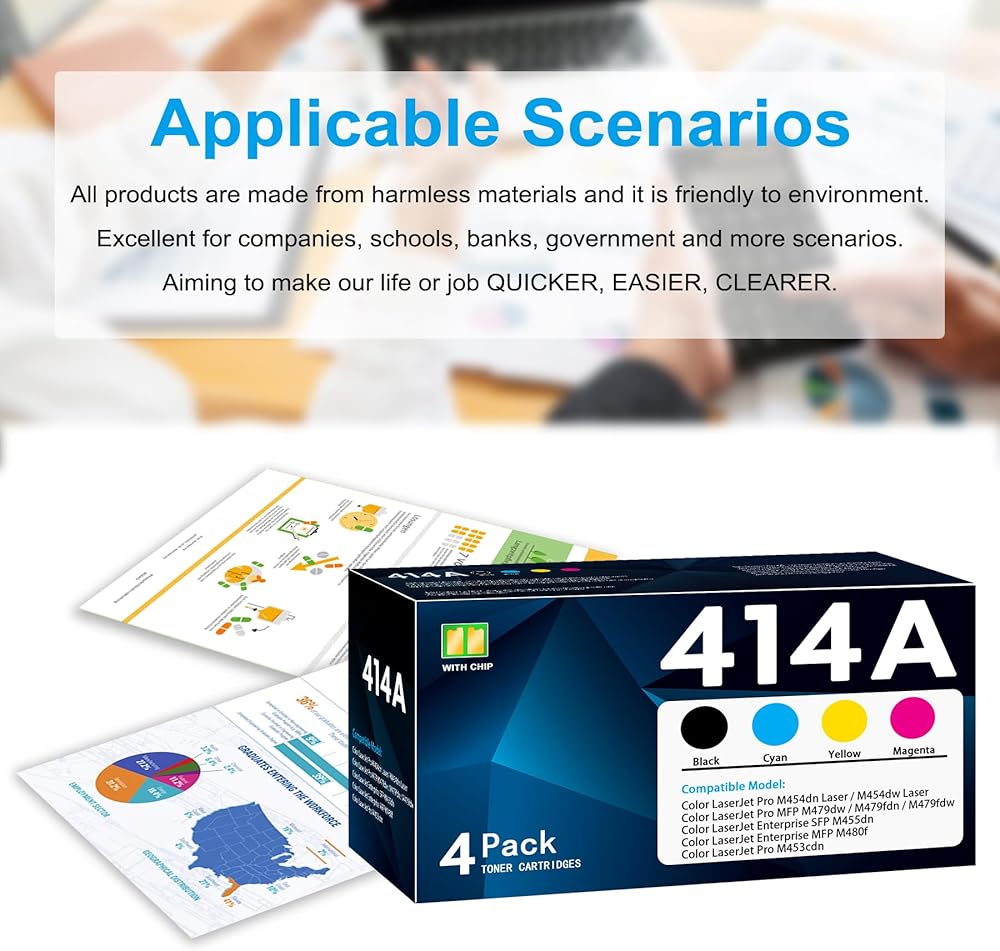 مع رقاقة: بديل متوافق لخراطيش الحبر 414A تحتوي 4 عبوات على الرقائق، لا حاجة لإزالتها وتثبيتها