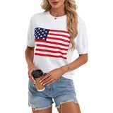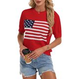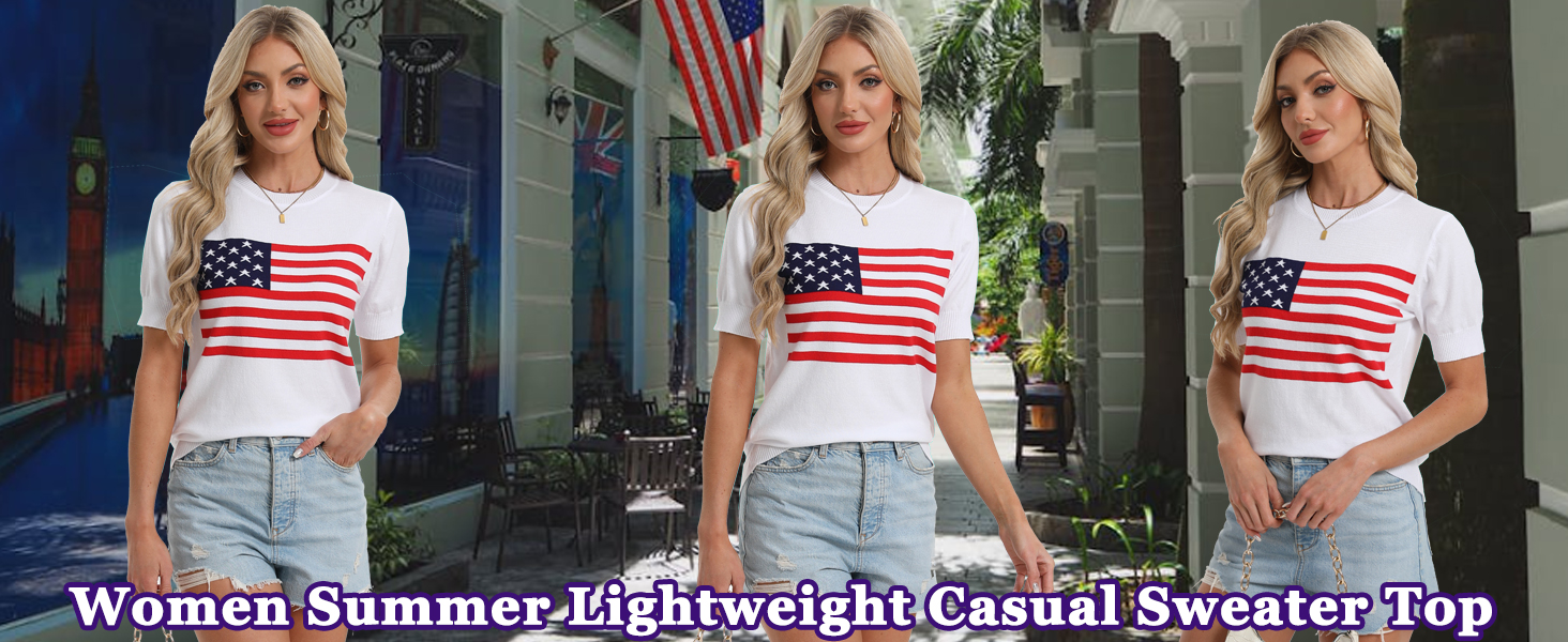 سترة علوية متعددة الاستخدامات: تعمل السترة النسائية ذات الأكمام القصيرة والرقبة الدائرية ذات العلم الأمريكي كسترة كاجوال وقميص على شكل سترة، مما يجعلها إضافة متعددة الاستخدامات لخزانة ملابسك الصيفية للارتداء مع طبقات أو ارتدائها بمفردها.