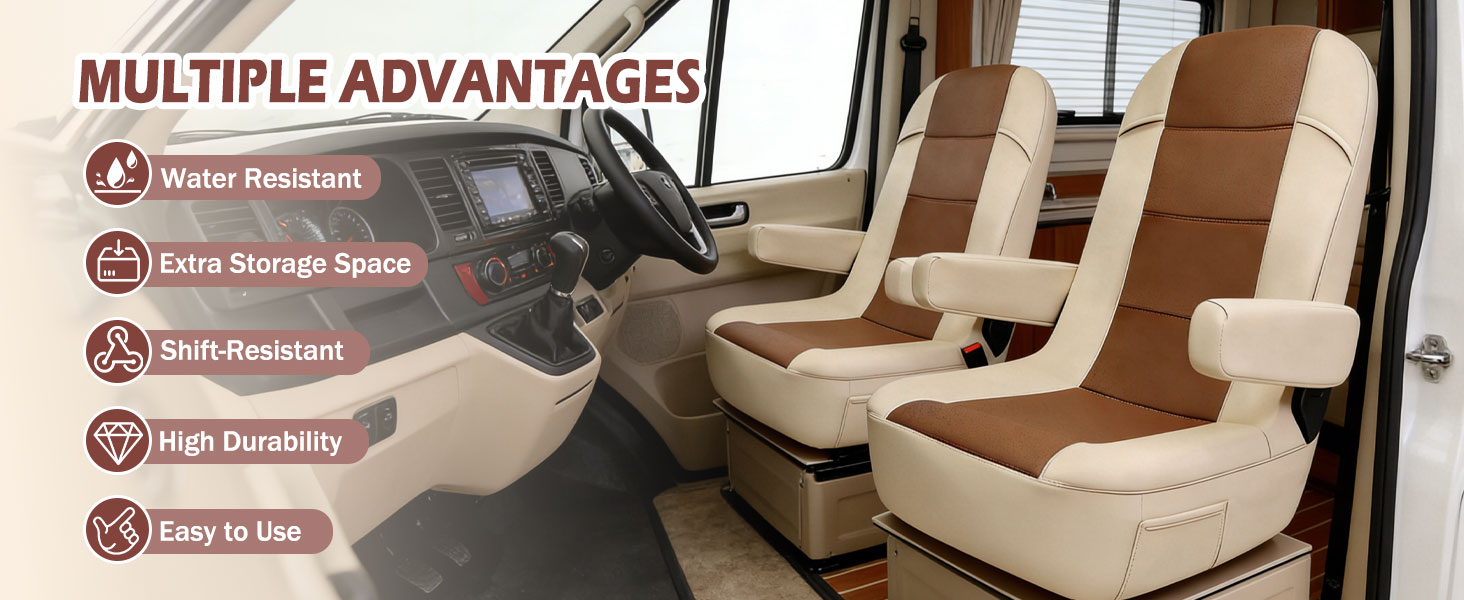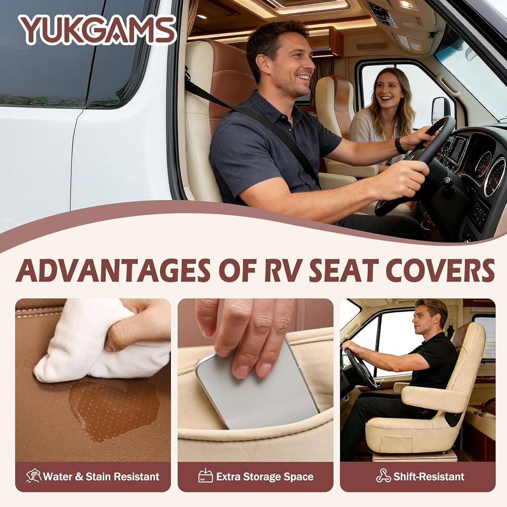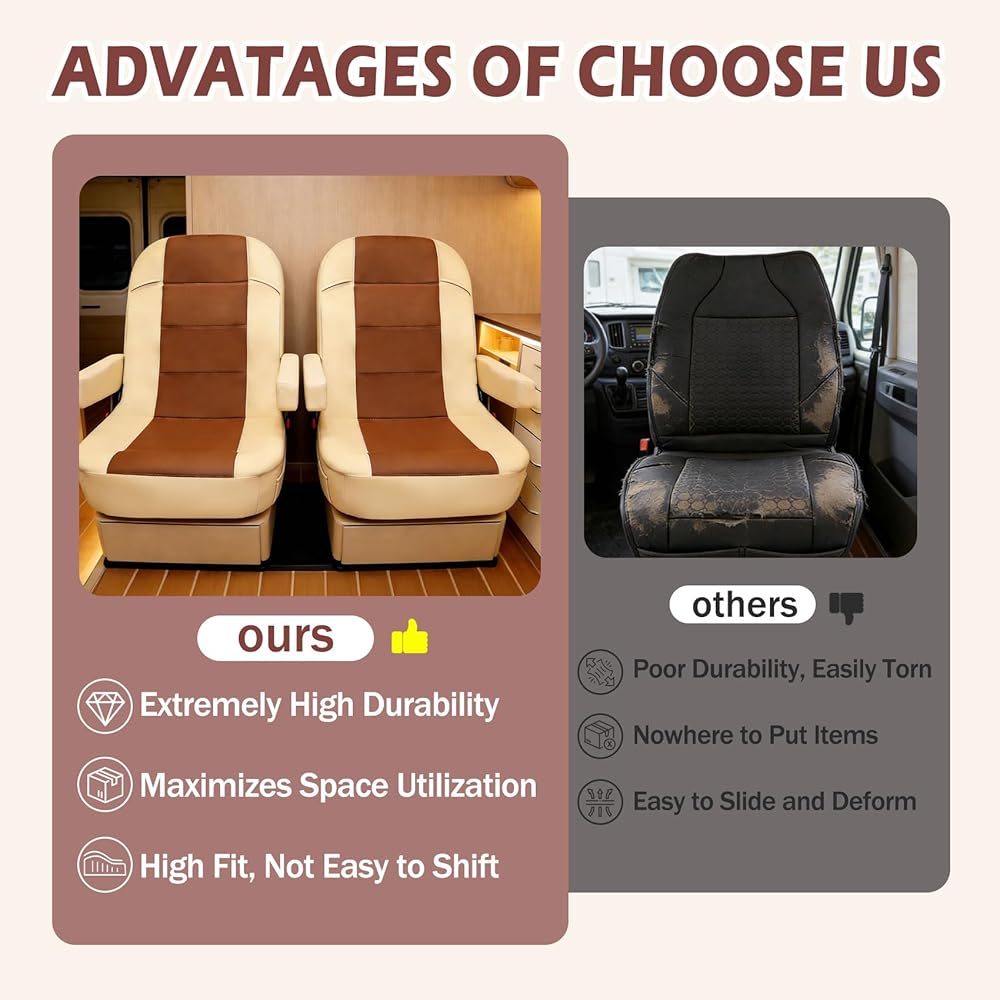 • 【أغطية مقاعد RV】تم تصميمها لتناسب بشكل مثالي معظم مقاعد RV، وعربات التخييم، ومقاعد سيارات السفر، وتوفر أغطية مقاعد RV مظهرًا ناعمًا ومصممًا بدون قماش فضفاض أو تجمعات غريبة. يغطي مقعد RV كراسي الكابتن، ويتوافق مع المركبات الترفيهية من الفئة A.