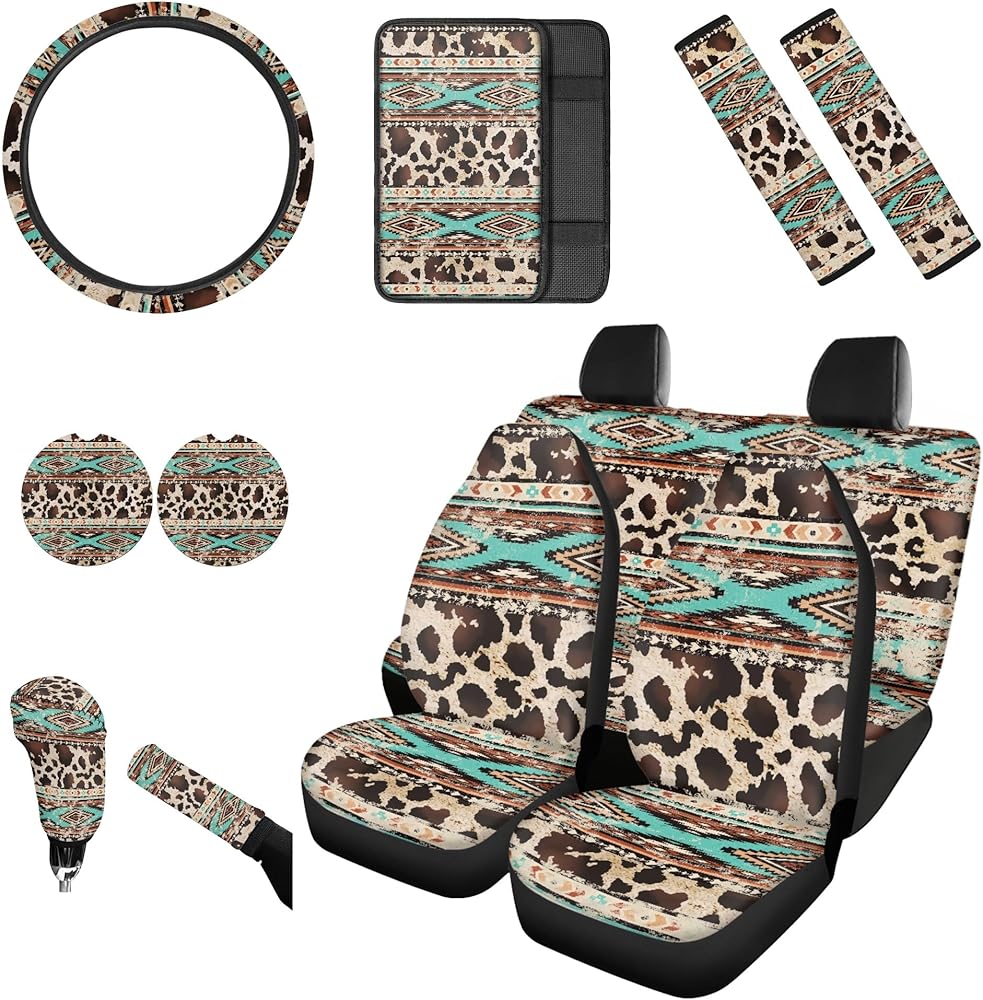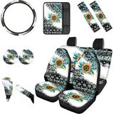 We offer a variety of exquisite pattern designs for you to choose from, such as strawberry/ladybug/southwest aztec/highland cow/sea turtle/hippie flower/boho mandala/eagle/American Flag/butterfly/sunflower/skull/horse, etc, these special edition automotive interior accessories will add a touch of elegance and class to your vehicle