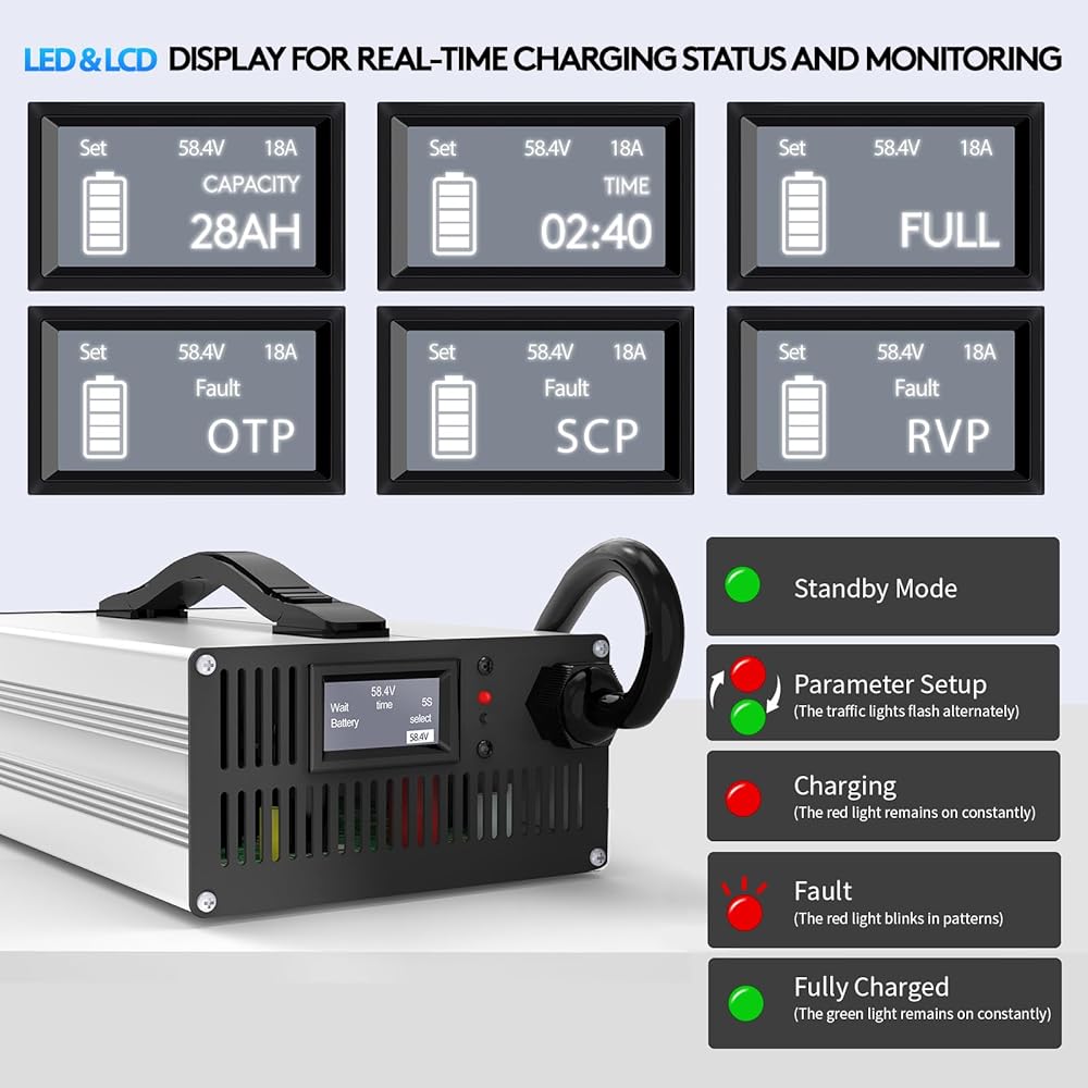 ✅【تيار شحن قابل للاختيار: 4A إلى 18A】يتميز بـ 6 مستويات إخراج قابلة للتعديل: 4A / 7A / 11A / 14A / 18A. اختر أفضل تيار يناسب سعة بطاريتك ويطيل عمرها. يضمن الشحن الذي يتم التحكم فيه بواسطة MCU الدقة والسلامة في كل مرحلة.