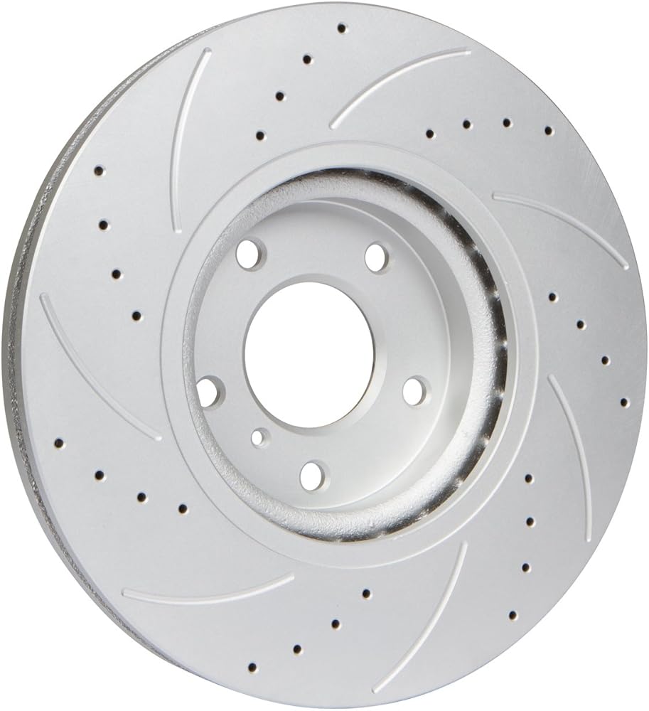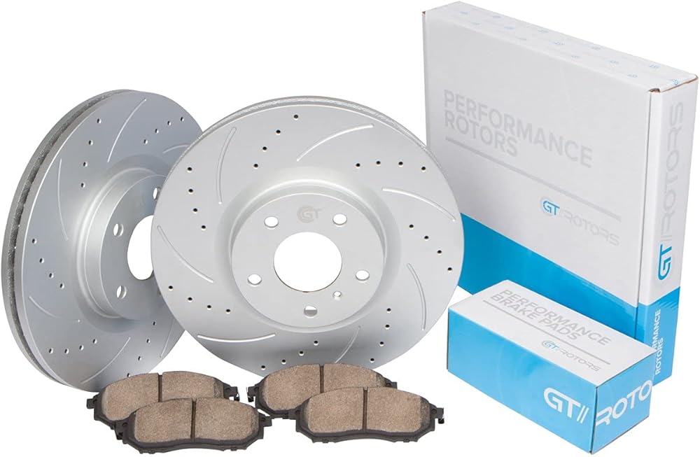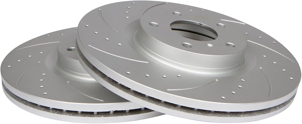 - مجموعة أمامية كاملة - مشقوقة ومثقوبة - إجمالي 2 قطعة دوارة + 4 قطع أمامية من وسادات الفرامل السيراميكية