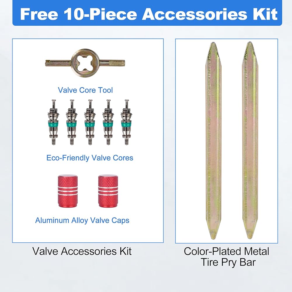 ملحقات التثبيت ذات القيمة المضافة متضمنة. تأتي كل عبوة مع رافعة إطارات معدنية مقاس 2 × 27 سم، و1 × مفتاح ربط أساسي للصمام، و2 × قلب صمام صديق للبيئة، و2 × أغطية صمامات من الألومنيوم. تم تصميم جميع الملحقات لاستبدال الأنبوب الداخلي بسرعة وبدون متاعب وبدون عمليات شراء إضافية.