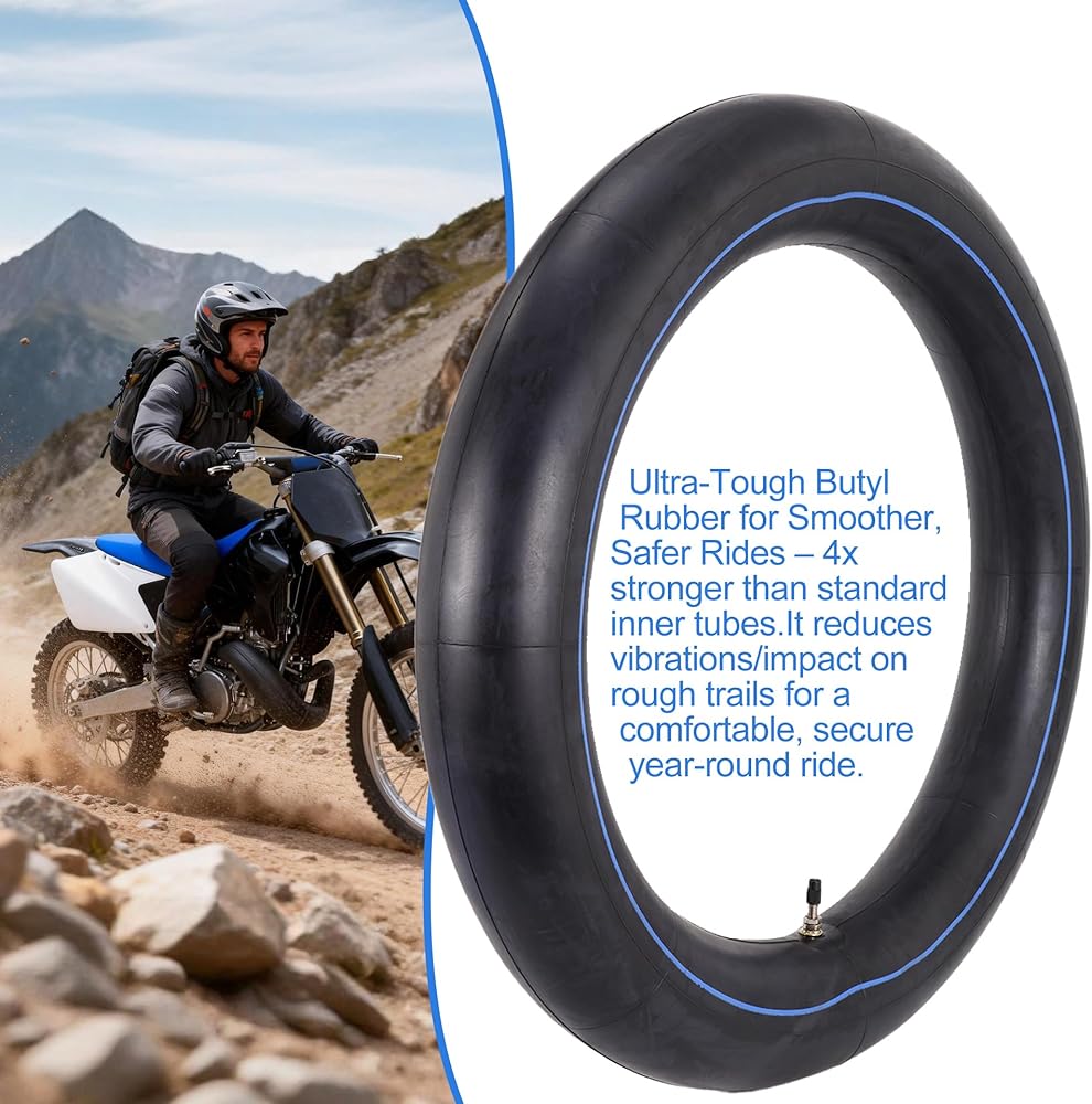 مطاط بوتيل متين للاستخدام في جميع التضاريس. مصنوع من مطاط بوتيل عالي التحمل، الأنبوب الداخلي يقاوم الثقوب والكشط والتشقق بشكل فعال. فهو يمتص الصدمات والاهتزازات ليمنحك قيادة أكثر سلاسة وثباتًا على المسارات الموحلة أو الأراضي الصحراوية أو الطرق المعبدة في أي موسم.