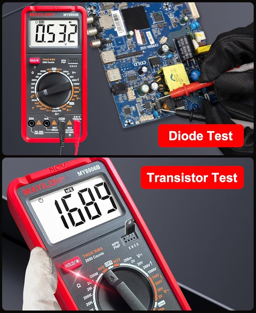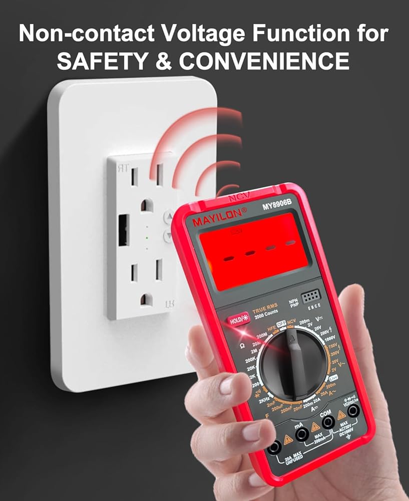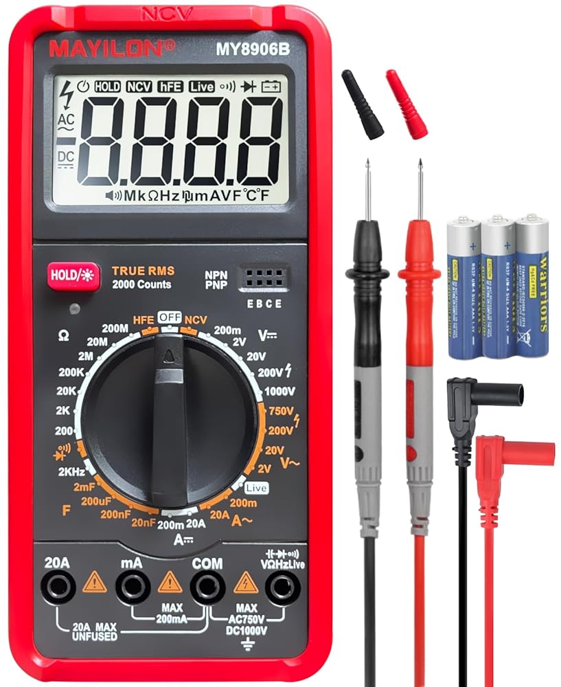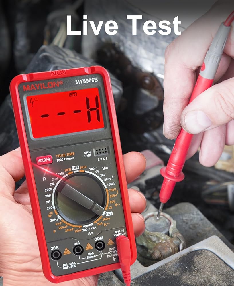 عداد متعدد: هذا جهاز متعدد حقيقي عالي الأداء RMS مزود بدائرة حماية كاملة المزايا من الحمل الزائد، يمكنه قياس الجهد الكهربي AC/DC، تيار AC/DC، المقاومة، السعة، الثنائيات، الترانزستورات (hFE)، التردد، الاستمرارية، NCV، والأسلاك المباشرة، وهو مناسب للمنافذ المنزلية، والصمامات، والبطاريات، واستكشاف أخطاء دائرة السيارات وإصلاحها، وفحص نظام الشحن، واختبار الأجهزة الإلكترونية داخل السيارة