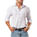 Mathch: يمكن أن يكون من السهل مطابقة القميص الرجالي ذو الأكمام الطويلة مع الجينز أو السراويل الرسمية أو السراويل غير الرسمية أو السراويل القصيرة لخلق نمط بسيط ولكن عصري. تعتبر قمصان الأعمال رائعة سواء بأزرار فردية أو يتم ارتداؤها بدون أزرار فوق تي شيرت/قميص بدون أكمام مناسب للشكل.