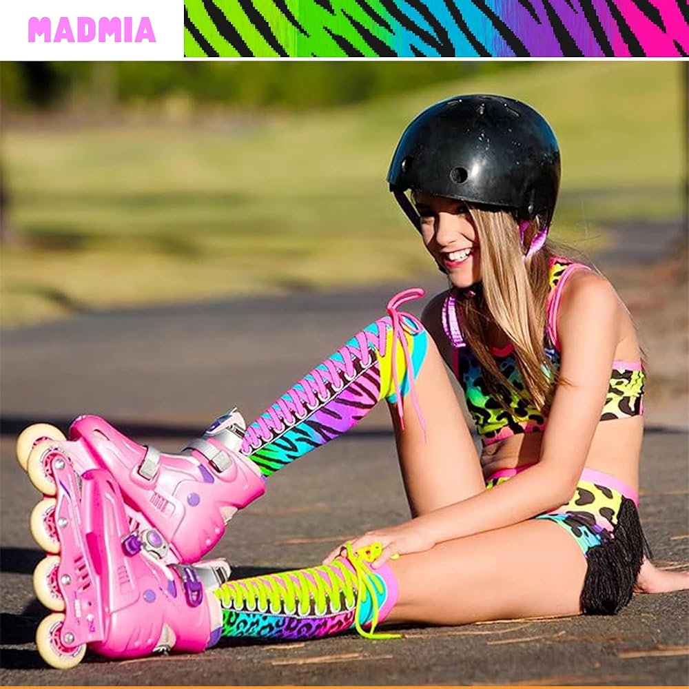جودة فائقة: مصنوعة من مزيج مثالي من 70% نايلون، 28% بوليستر و2% سباندكس، هذه الجوارب النابضة بالحياة والملونة عالية الركبة توفر ملاءمة مريحة للغاية مع مرونة جيدة، لذلك لن تنزلق أسفل الساق أو تمدد التصميم عند ارتدائها.