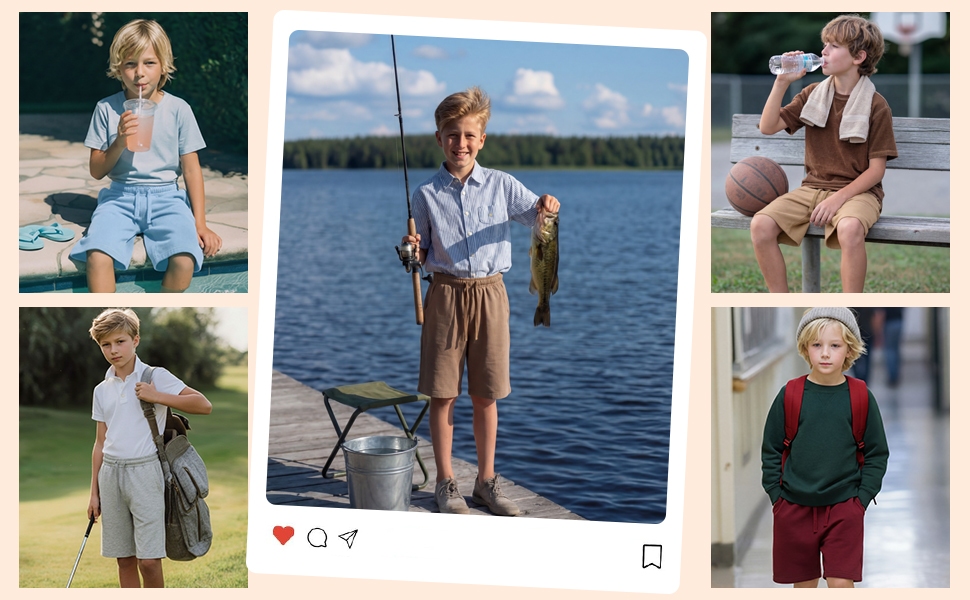من السهل ملاءمته: هذه السراويل القصيرة غير الرسمية للأولاد يمكن ارتداؤها بسهولة مع القمصان أو القمصان أو القمصان الجيرسيه؛ متعدد الاستخدامات لكرة السلة أو الجري أو المدرسة أو نزهات نهاية الأسبوع، ويتحول بسلاسة من الملعب إلى الملابس الكاجوال