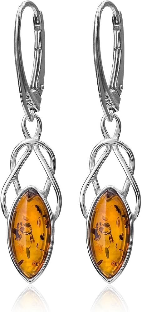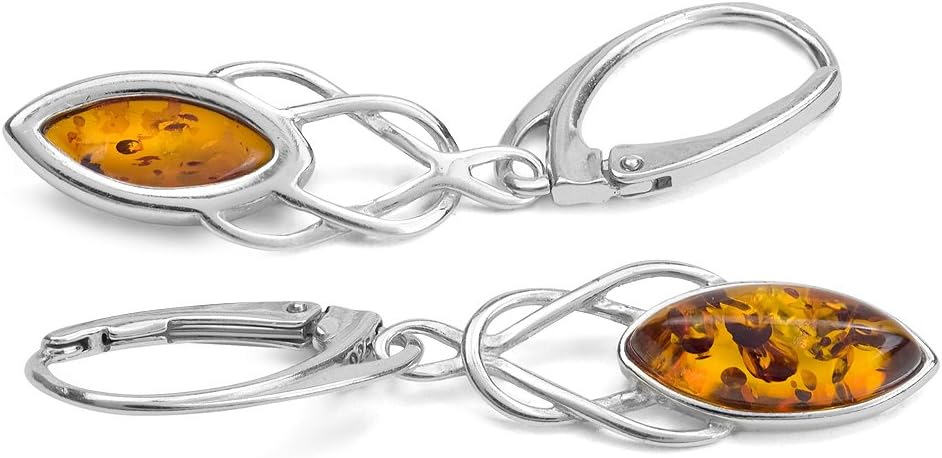 إيان وفاليري شركة العنبر الفضة الاسترليني أقراط ماركيز المتدلية Leverback