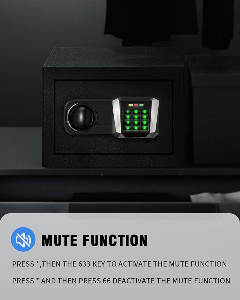 【صندوق آمن للأمان مع إضاءة LED ذكية ووظيفة كتم الصوت】: صندوق المستندات المقاوم للحريق من Bioaeyok يعمل تلقائيًا على تشغيل ضوء ناعم عند فتحه باستخدام لوحة المفاتيح. يمكن رؤية المحتويات الموجودة بالداخل بسهولة حتى في الظلام. بالإضافة إلى ذلك، تم تجهيز الخزنة أيضًا بوظيفة صامتة. لتجنب إزعاج الآخرين، اضغط على "*" ثم اضغط على "633" لتفعيل الوضع الصامت. اضغط على "*" ثم "66" لتشغيل الصوت مرة أخرى.