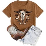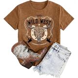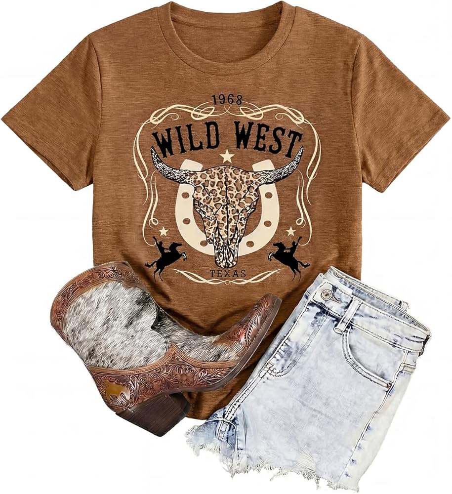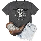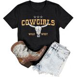 السمات: قميص عتيق على الطراز الغربي للنساء، قمصان راعية البقر، تي شيرت رعاة البقر للنساء، قمصان غربية للسيدات، تي شيرتات برسوم جمجمة ذات توجيه قديم، تتميز بتصميم جرافيك جمجمة بقرة مرحة. رائعة للتصوير الفوتوغرافي غير الرسمي في الشوارع، إنها سترة لطيفة وأنيقة.