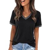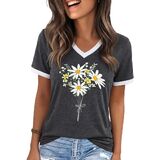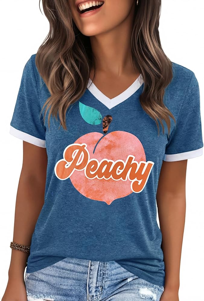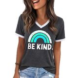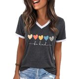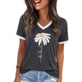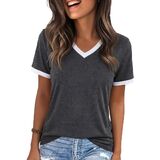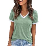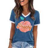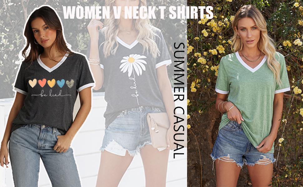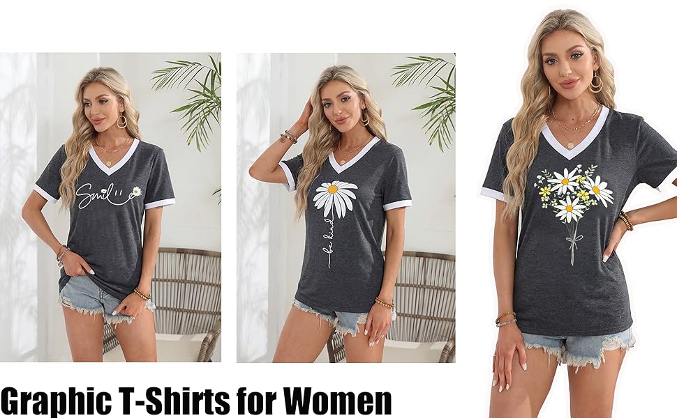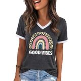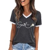 الميزات: تي شيرتات جرافيك للنساء، بلايز ربيع للنساء 2026، طباعة حروف مضحكة، كم قصير، كتلة الألوان، رقبة على شكل حرف V، بلايز صيفية للنساء 2026، تي شيرت كاجوال فضفاض لطيف للنساء