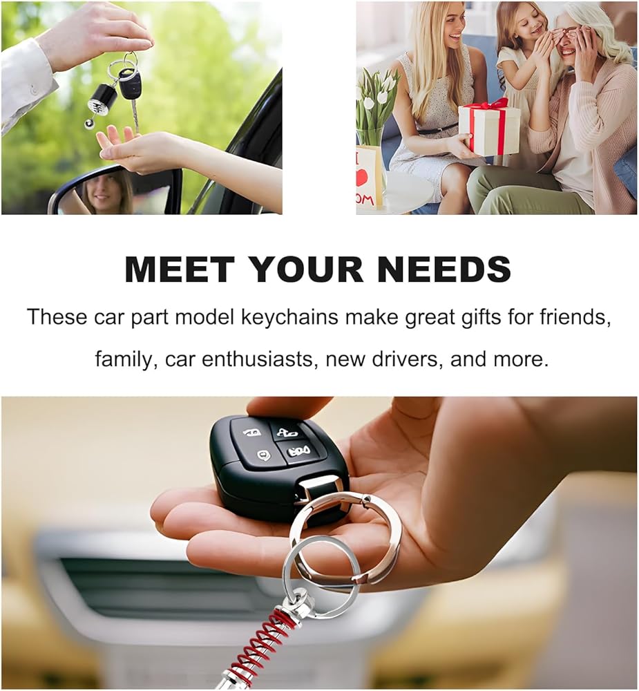 Stylish Decoration: This model keychain set features a unique design. Each keychain is crafted to replicate the appearance of automotive parts, boasting vivid and interesting shapes. It is an ideal choice for car enthusiasts and mechanics, and serves as a cool accessory to showcase one's personality
