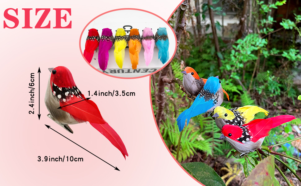 🦜【تصميم واقعي ونابض بالحياة】 يبلغ طول هذه الطيور الاصطناعية 3.9 سم وعرضها 1.4 سم، وتتميز بريش واقعي للغاية، مما يجعلها مثالية لتزيين شجرة عيد الميلاد، وأكاليل الزهور، وترتيبات الزهور، وقطع الزفاف المركزية. تضيف الطيور ذات الريش الواقعية لمسة من الطبيعة إلى أي مكان!