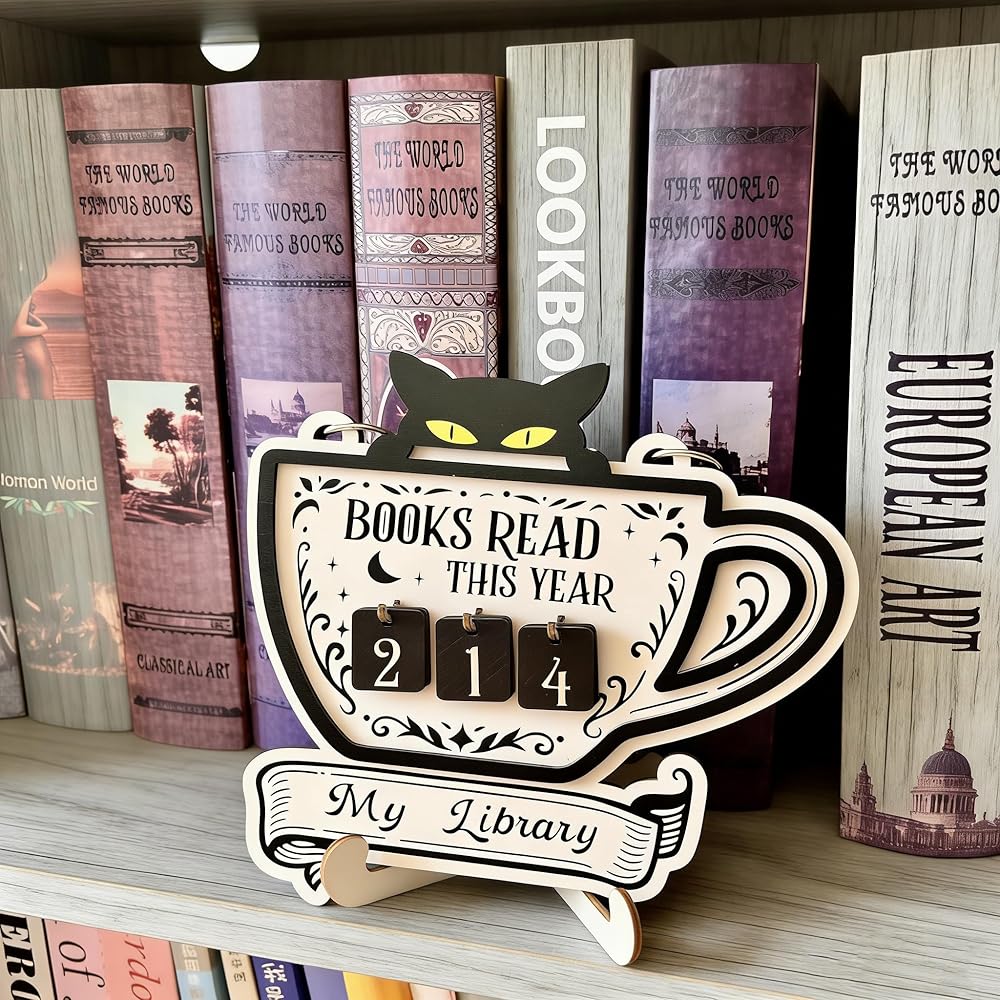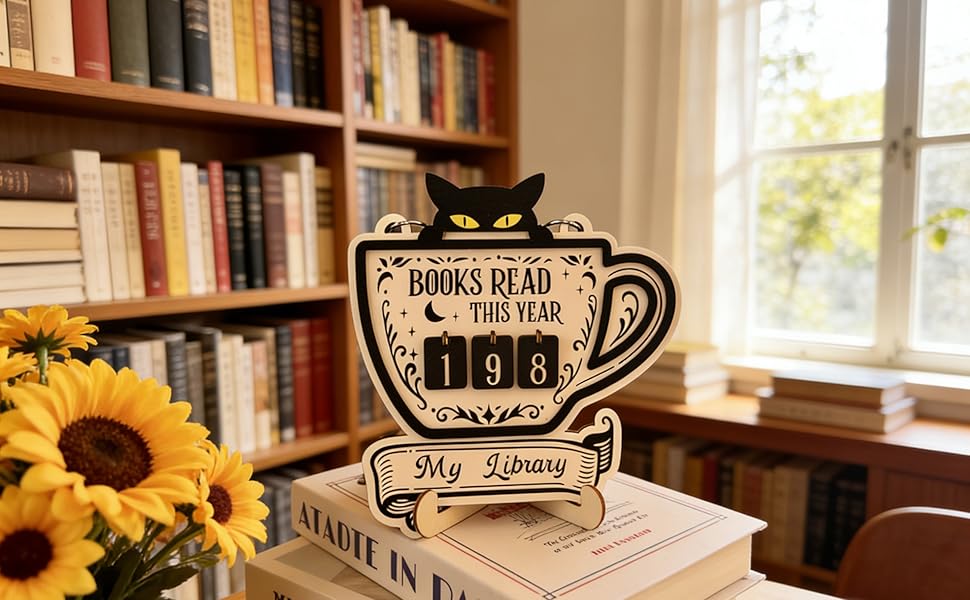 ديكور قراءة متعدد الاستخدامات: تتبع أهداف القراءة السنوية، أو عرض الكتب المكتملة، أو استخدمها كديكور ساحر لرف الكتب. يضيف تصميم القطة اللطيفة شخصية إلى المكتبات المنزلية أو الفصول الدراسية أو المكاتب بينما يعمل كأداة وظيفية لتحفيز القراءة.