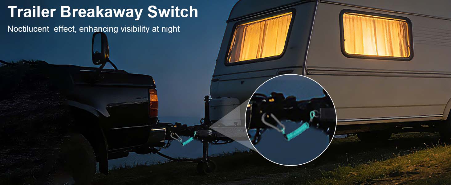 أداء موثوق وراحة البال: تم تصميمه للحصول على أداء متسق وراحة البال، يضمن مفتاح فرامل الطوارئ للمقطورة هذا تعشيق فرامل المقطورة عند الحاجة إليها. مزيج من المواد الممتازة، وكابل مدروس يتوهج في الظلام، وخطاف آمن كبير الحجم يوفر حلاً يمكن الاعتماد عليه يمكن لأصحاب المقطورات الوثوق به لرحلات أكثر أمانًا