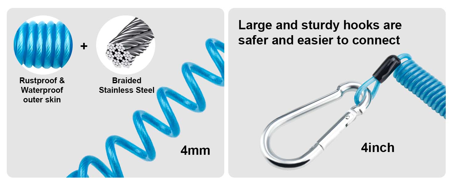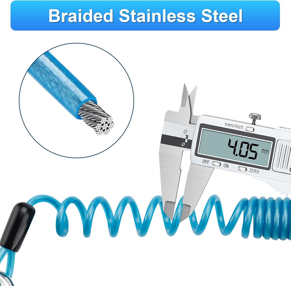 كابل ملفوف يتوهج في الظلام بطول 4 أقدام: يشتمل على كابل ملفوف عملي للغاية بطول 4 أقدام مصنوع من الفولاذ المقاوم للصدأ المضفر مع طبقة واقية لمنع التآكل. تعمل ميزة التوهج الفريدة في الظلام على تحسين الرؤية في ظروف الإضاءة المنخفضة. يحافظ تصميم الزنبرك على الاتصال مرتبًا، ويزيل الأسلاك السائبة، ويحافظ على رابط موثوق فوق الطريق