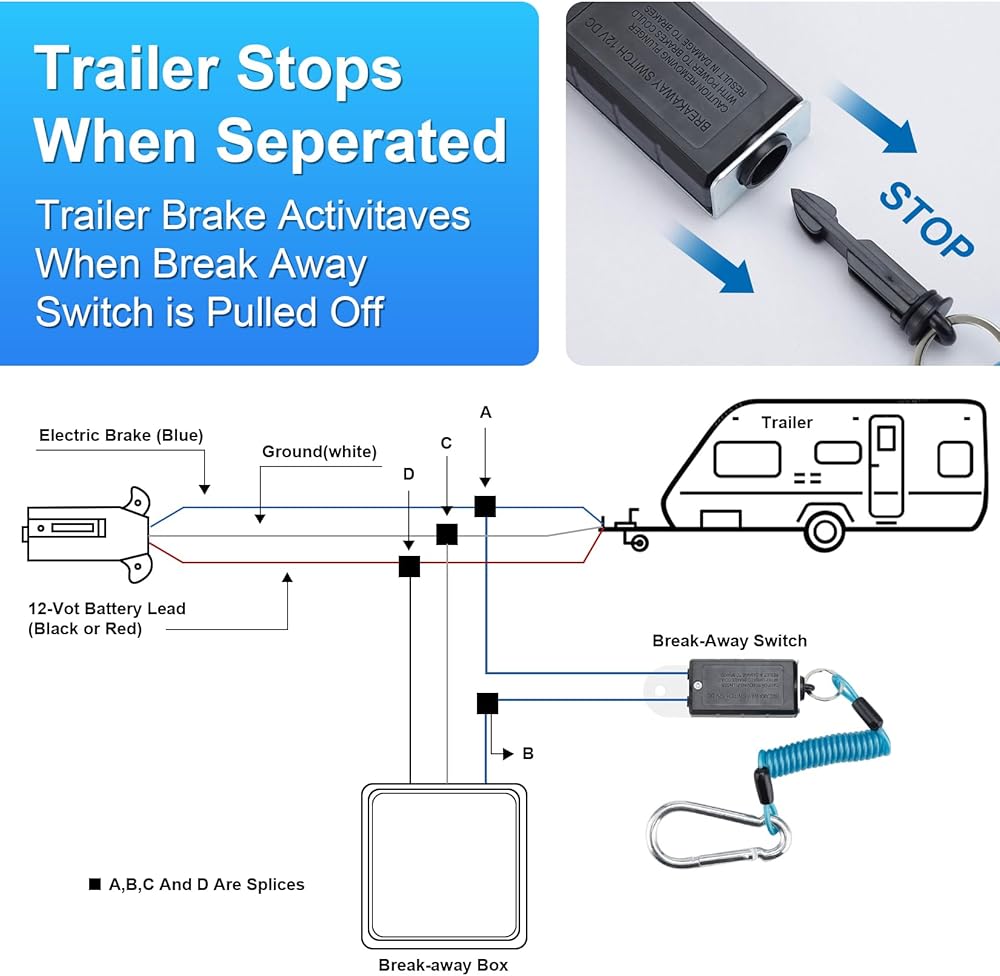 خطاف كبير للغاية وسهل التركيب: يتميز بخطاف قوي كبير الحجم من أجل اتصال أكثر أمانًا وسهولة بمركبة السحب الخاصة بك. تم تصميم وحدة مفتاح التحكم في فرامل المقطورة للتركيب السريع والخالي من الأدوات. ما عليك سوى تركيب صندوق التبديل، وتوصيل الأسلاك بالبطارية ونظام الفرامل، ثم ربط الخطاف - دون الحاجة إلى مهارات متخصصة أو أدوات معقدة