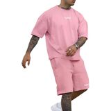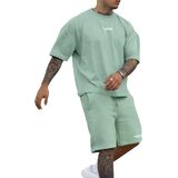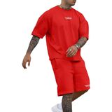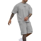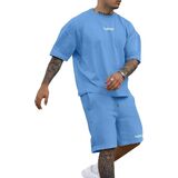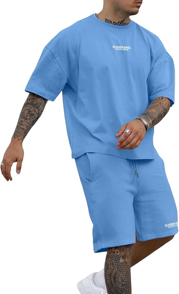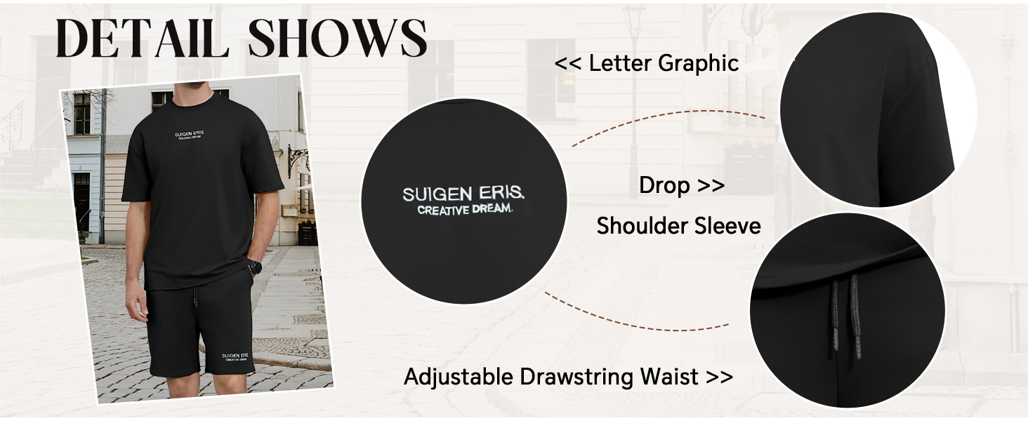 تصميم مجموعة شورت رجالي مكون من قطعتين: بدلة رياضية مكونة من قطعتين، تي شيرت وقصير، رقبة دائرية، كم قصير، كتف منسدل، تصميم الحروف يجعلها أكثر أناقة من المجموعة الأساسية، السراويل القصيرة غير الرسمية مصممة بخصر برباط قابل للتعديل، وسروال جيبين جانبيين، مناسب لك لجلب مقتنياتك، مثل المفاتيح والهاتف والمحفظة. مثالي للارتداء اليومي والأنشطة الخارجية.