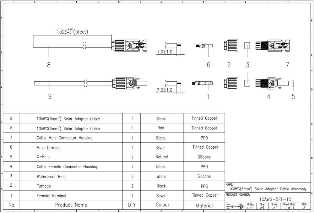 This 10 gauge(6mm²) solar extension cable is constructed with tinned copper conductors. The tin plating protects against oxidation and corrosion, which is especially crucial in humid or high-temperature environments. Compared to bare copper, this construction ensures lower resistance, superior conductivity, and maximum power transfer efficiency over the long term