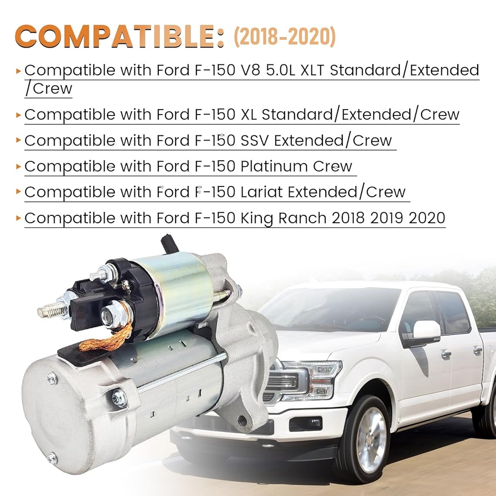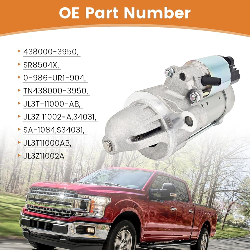 【ملاءمة مثالية】: 438000-3950 ستارتر متوافق تمامًا مع Ford F-150 V8 5.0L XLT قياسي/ممتد/طاقم، متوافق مع Ford F-150 XL قياسي/ممتد/طاقم، متوافق مع Ford F-150 SSV ممتد/طاقم، متوافق مع Ford F-150 Platinum Crew، متوافق مع Ford F-150 Lariat Extended/Crew، متوافق مع Ford اف-150 كينج رانش 2018 2019 2020