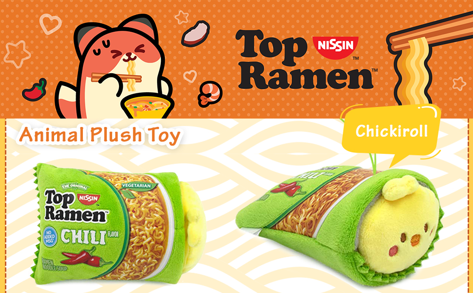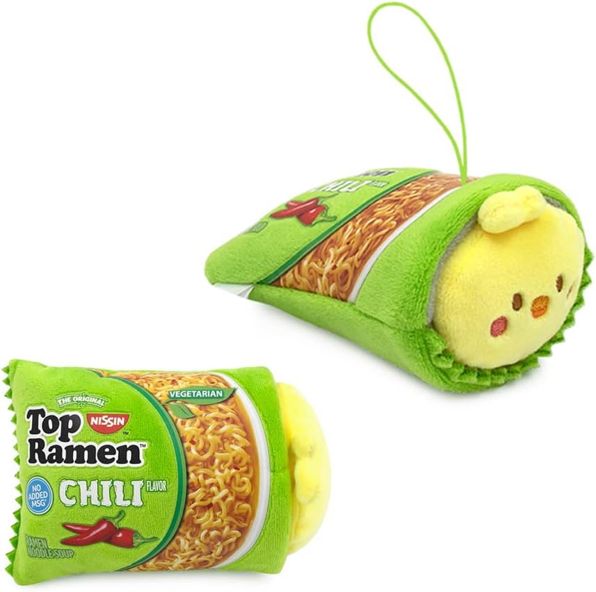 سلسلة مفاتيح من القطيفة على شكل حيوانات محشوة من أنيرولز - دمية لعبة ساحرة لزينة رامين الرسمية | ناعم، اسفنجي، لطيف، ضوضاء مجعدة، آمن| هدية عيد ميلاد كتكوت بنكهة الفلفل الحار معكرونة تشيكيرول 4 بوصة