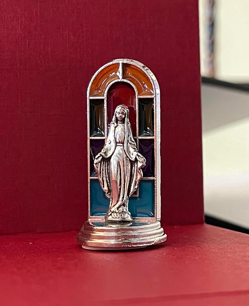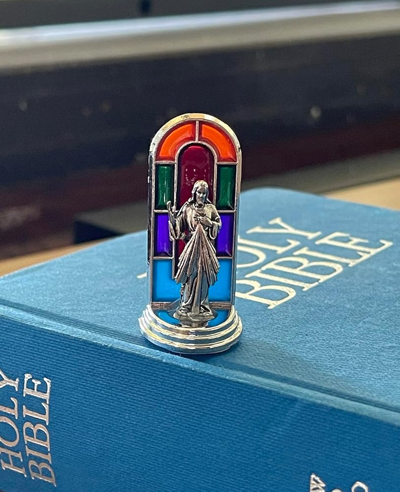 Totally 5pcs mix/a set, included St.Christoper, St. Michael the Archangel, Holy Family, The Divine Mercy Medal, Our Lady, with beautiful church stained window background.