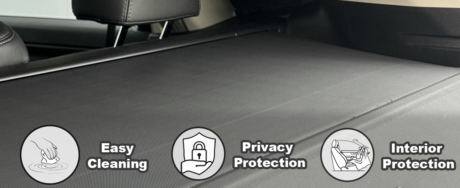 [حماية معززة للخصوصية] يحمي غطاء صندوق السيارة القابل للسحب مقتنياتك من أعين المتطفلين، مما يضمن بقاء مقتنياتك الثمينة مخفية وآمنة. مثالية لحفظ الأشياء مثل الأمتعة أو البقالة أو المتعلقات الشخصية بعيدًا عن الأنظار.
