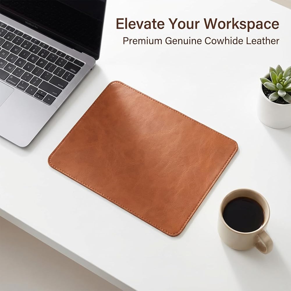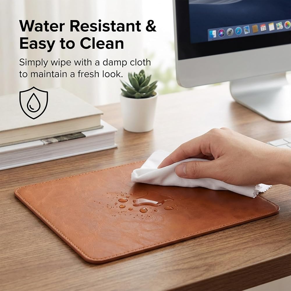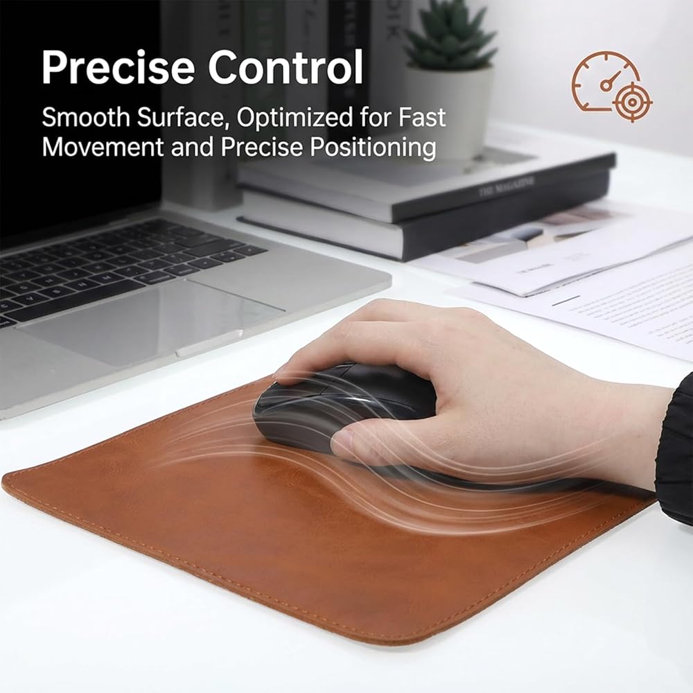 Superior Material: Made from premium PU leather, this brown mouse pad adds a touch of elegance to any office environment, ensuring a stylish and professional look.