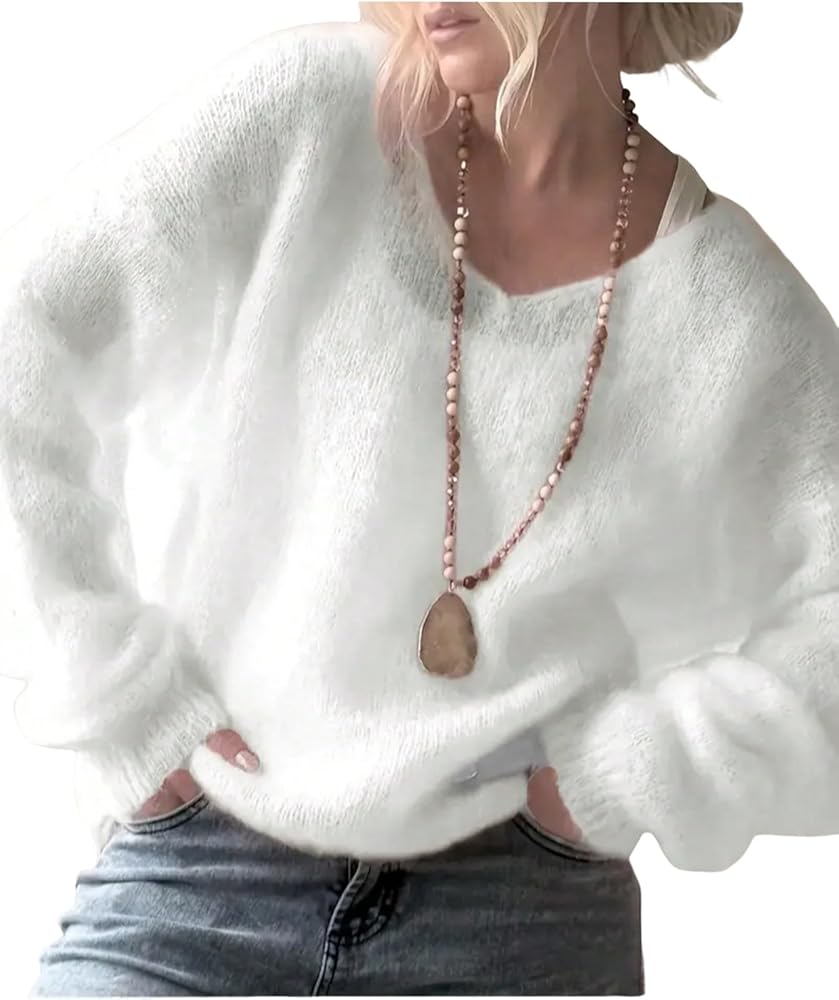 سترة حريمي من Urchics برقبة على شكل V غامضة من مزيج الموهير المخملي، بلوفر كاجوال وردي مغبر للخريف والشتاء in Kuwait