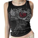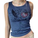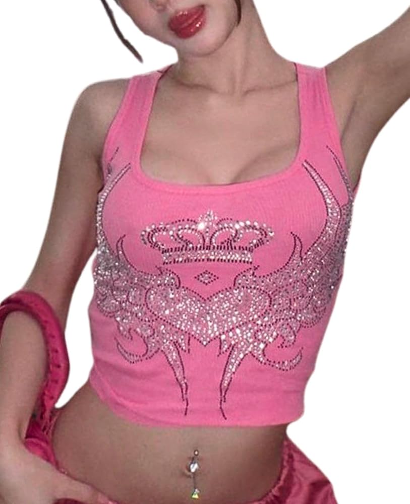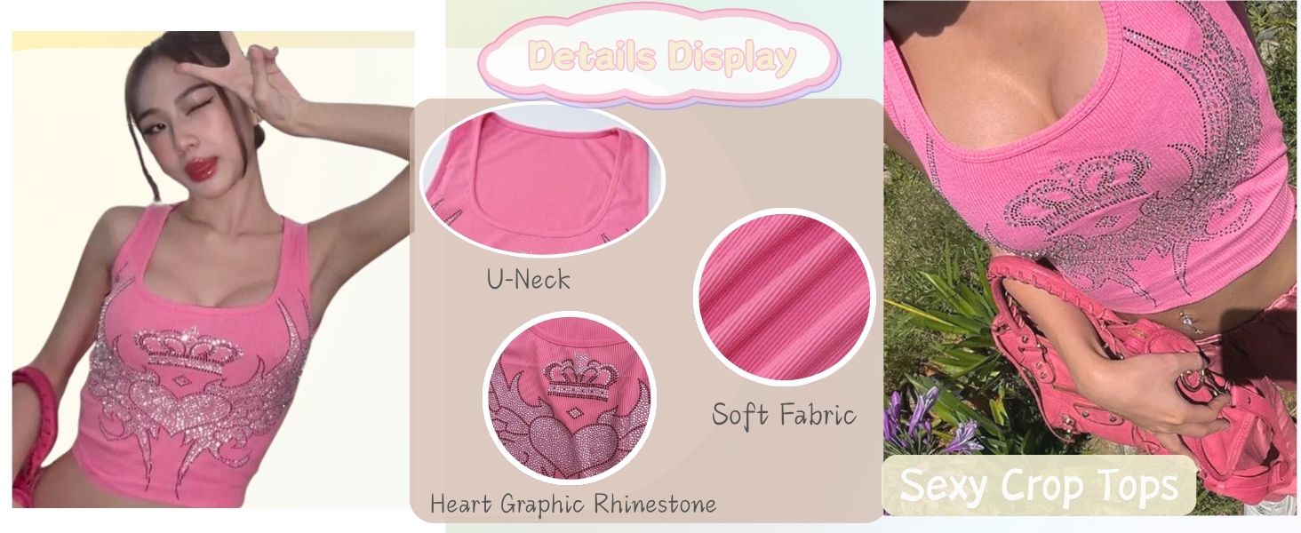 قمصان بدون أكمام للسيدات والفتيات برسومات قلب وحجر الراين ورقبة على شكل حرف U بدون أكمام ملابس صيفية من Coquett in Kuwait