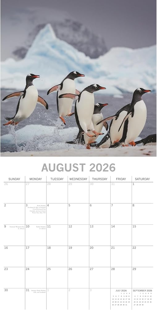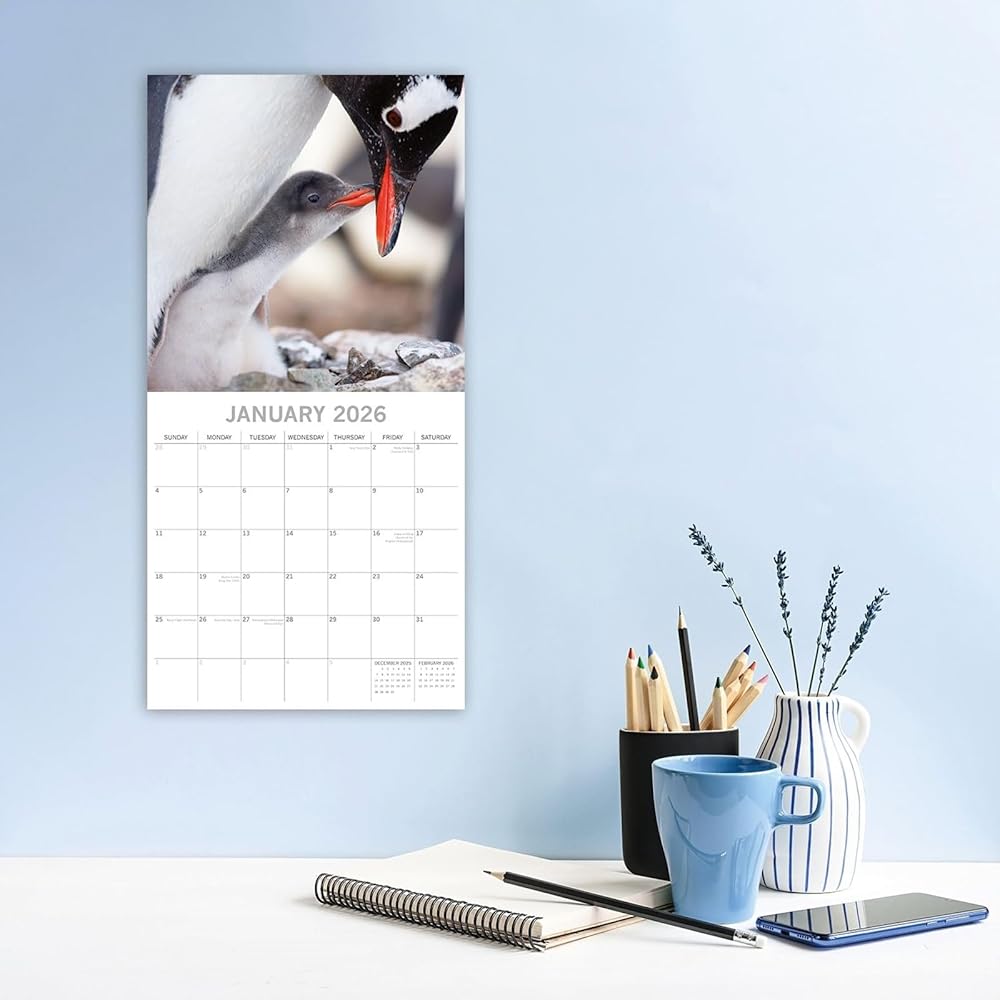 • صور ساحرة: استمتع بصور مذهلة لطيور البطريق كل شهر وأنت تستخدم تقويم الحائط هذا لعام 2026 مع الملصقات. كل صفحة من هذا التقويم المربع الذي يبلغ طوله 16 شهرًا تجلب إحساسًا بالبهجة والإلهام لمنزلك أو مكتبك