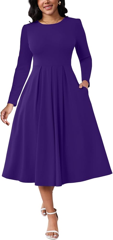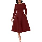 تصميم أنيق: يتميز بمقاس جذاب على شكل حرف A وصورة ظلية مضيئة مع خط عنق دائري كلاسيكي وحاشية متوسطة الطول تقع برشاقة أسفل الركبة للحصول على مظهر أنثوي خالد.