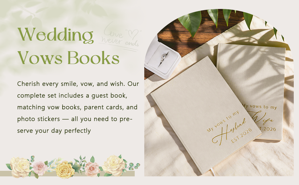 أنشئ ذكريات زفاف دائمة: حافظ على عهودك ومشاعرك الخاصة بشكل جميل. تم تصميم مجموعة كتب الزفاف الخالدة هذه لتصبح كتاب ذكريات ثمينًا لسنوات قادمة، حيث تلتقط جوهر التزامك