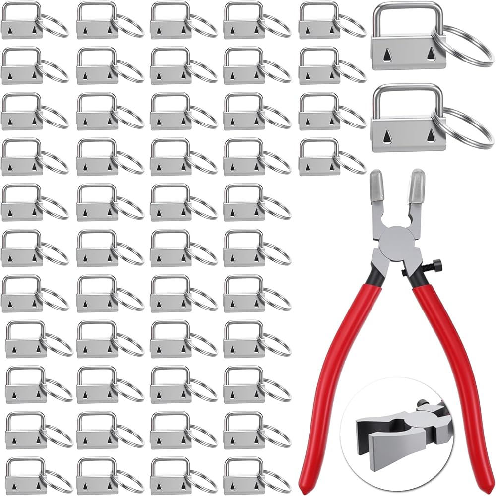 1 Inch Key Fob Hardware Kit (50pcs + Pliers):You'll receive 50 pcs of 1inch key fob hardware (each with a key ring) + 1 pair of dedicated key fob pliers—ample quantity to cover all your daily DIY keychain projects, craft needs, and replacement requirements.
