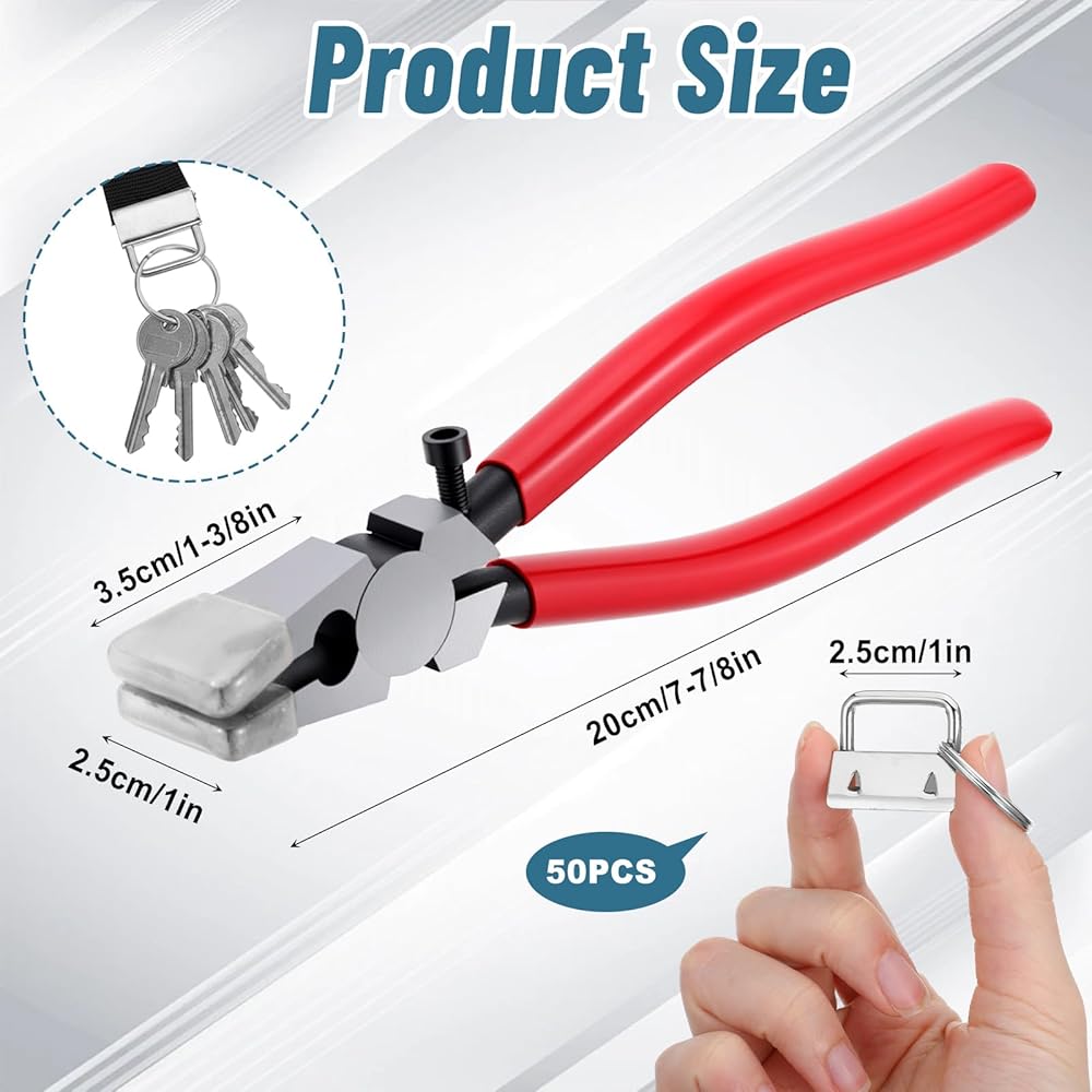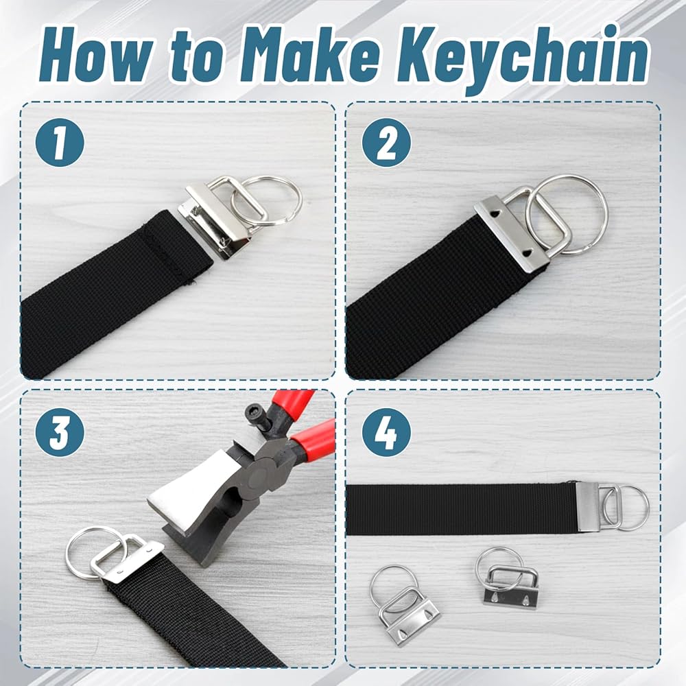Effortless Installation:Ideal for custom keychains, wristlets, straps, lanyards, suitcase/bag accessories, and all DIY craft projects. Simply attach the 1-inch hardware to both ends of webbing/ribbon/fabric, then press firmly with the included pliers—no special skills or tools needed.